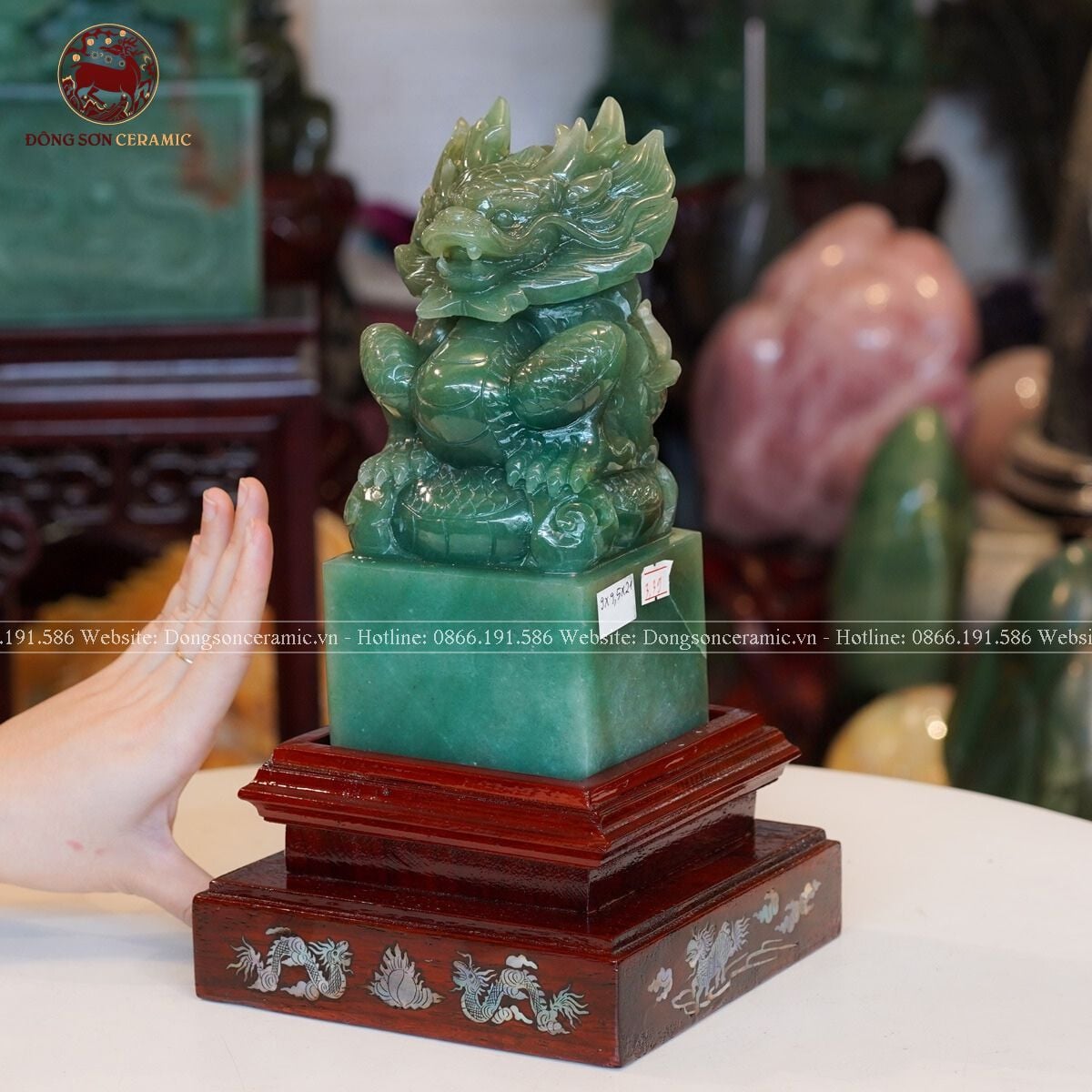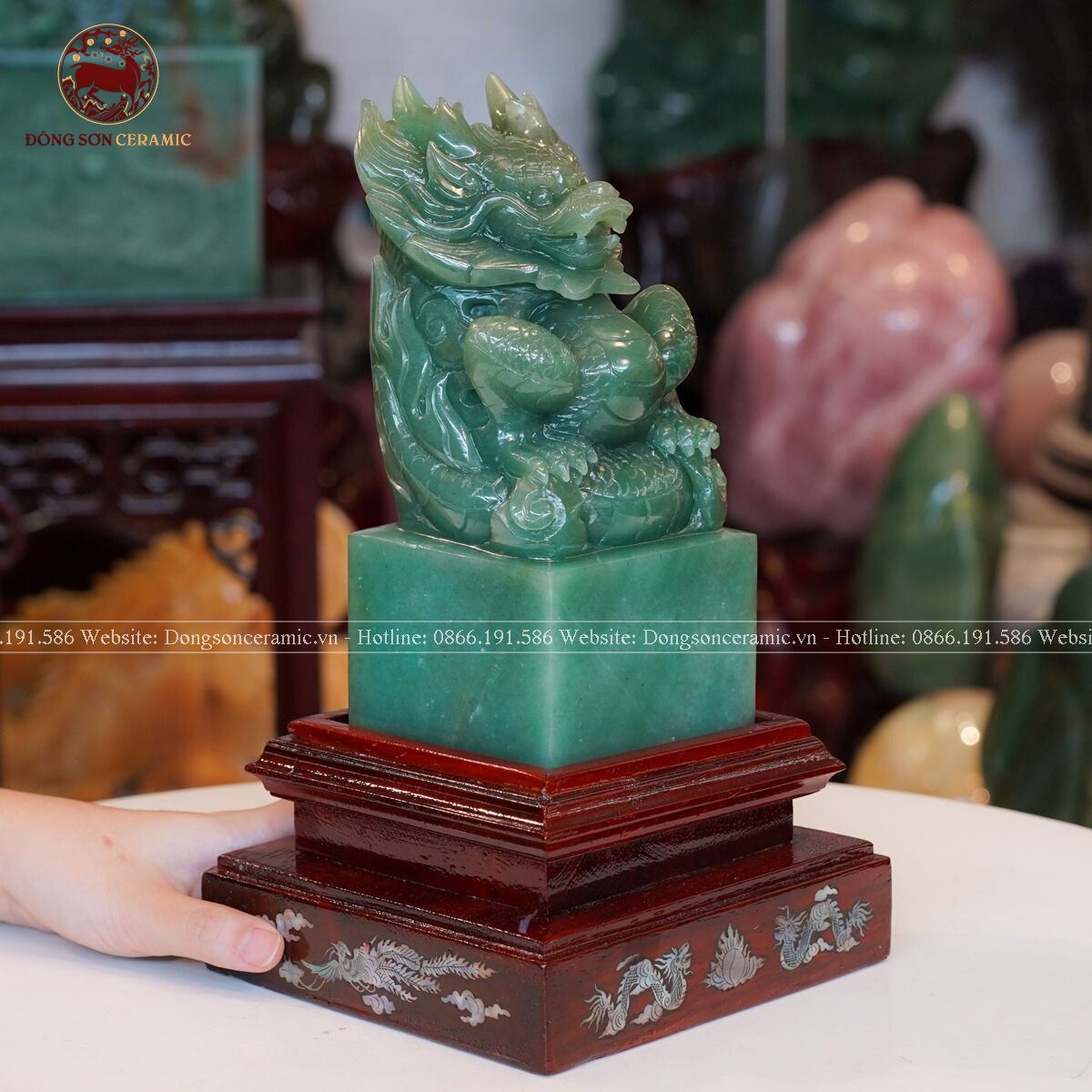 Quà Tặng Cao Cấp Ấn Rồng Thạch Anh Xanh kích thước 9x9,5x21cm