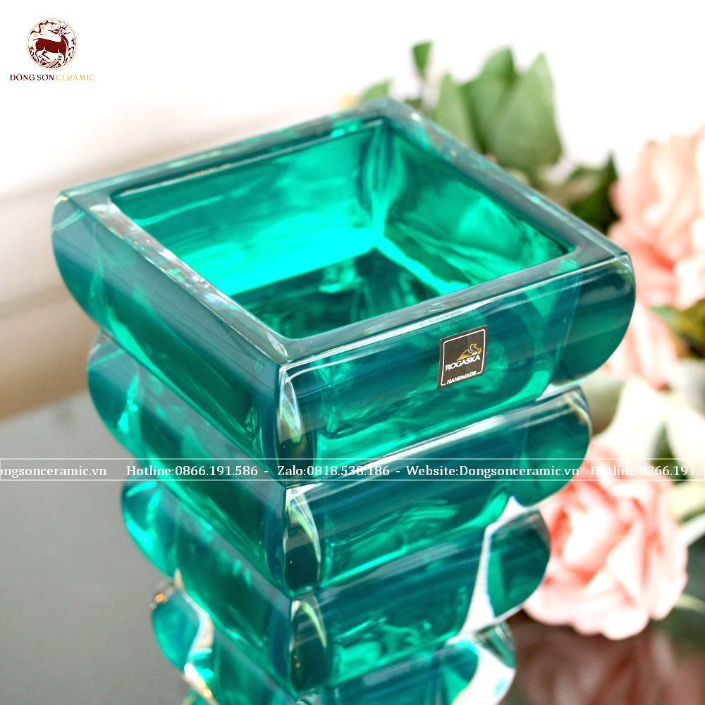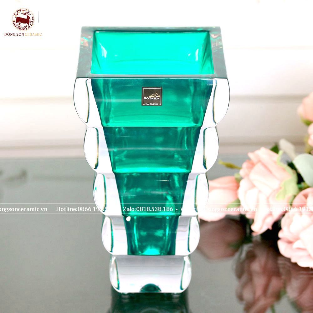 Binh hoa pha lê màu xanh lá vẽ hoa kích thước cao 25cm