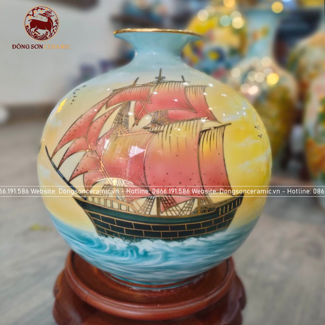 Bình Hút Tài Lộc gốm Bát Tràng thuận buồm xuôi gió men màu kích thước 35cm | Quà Tặng Cao Cấp bình hút tài lộc Bát Tràng