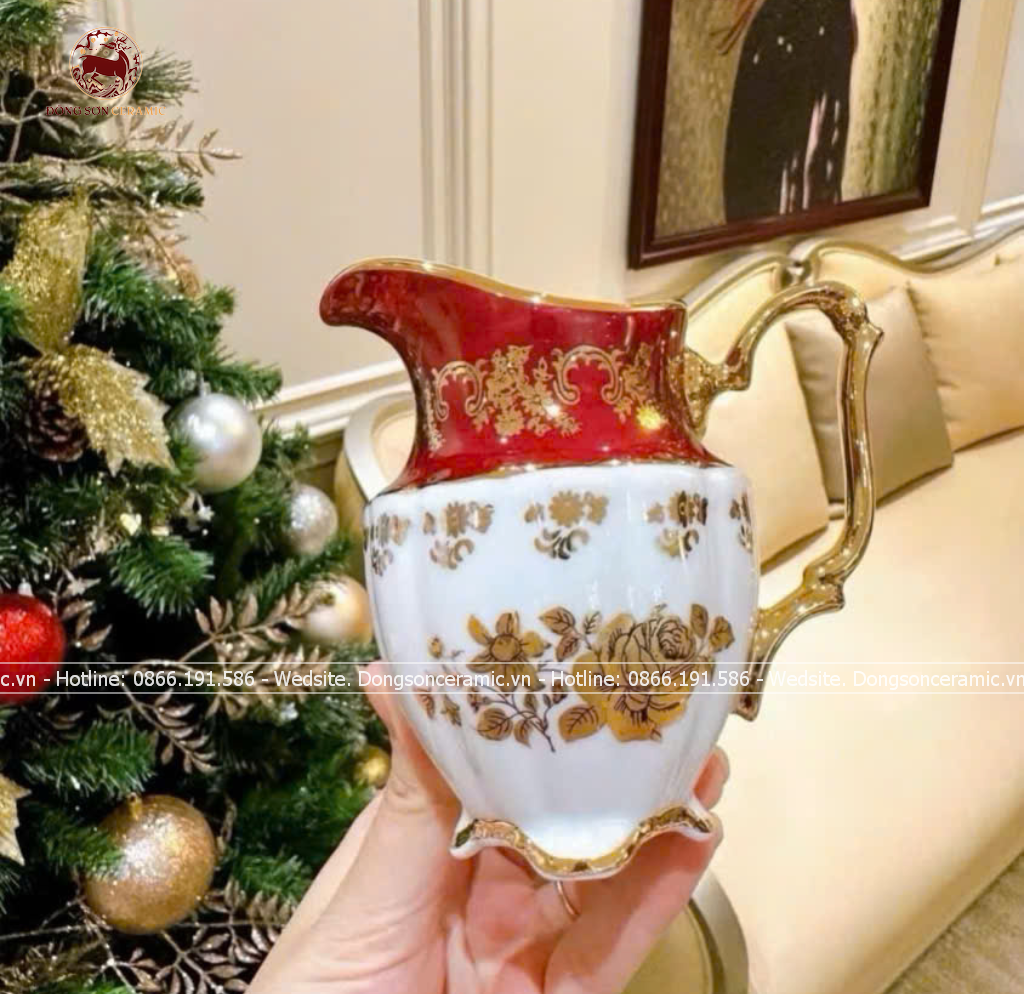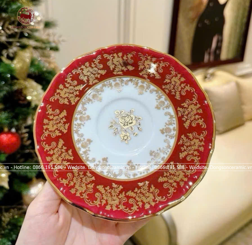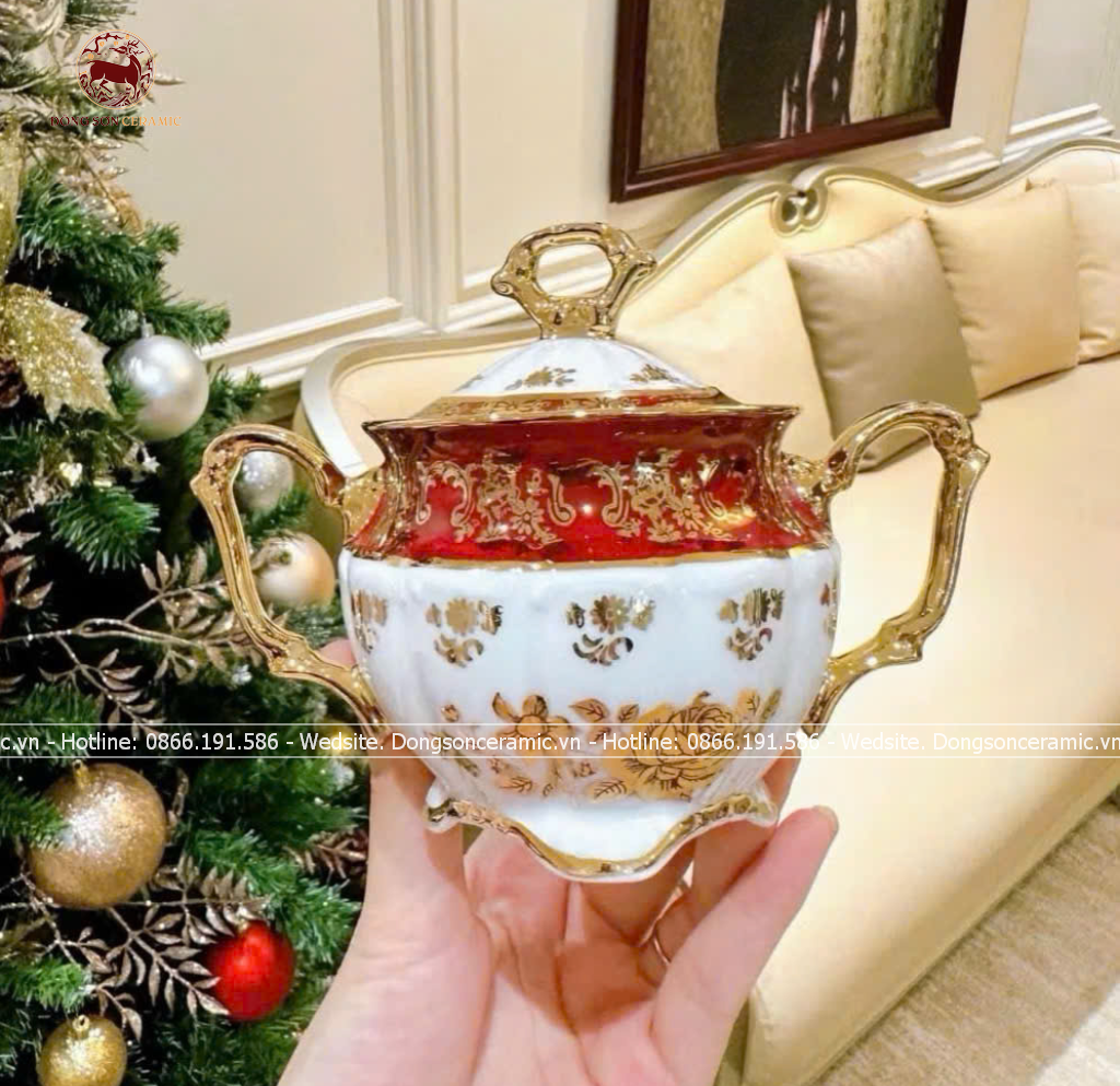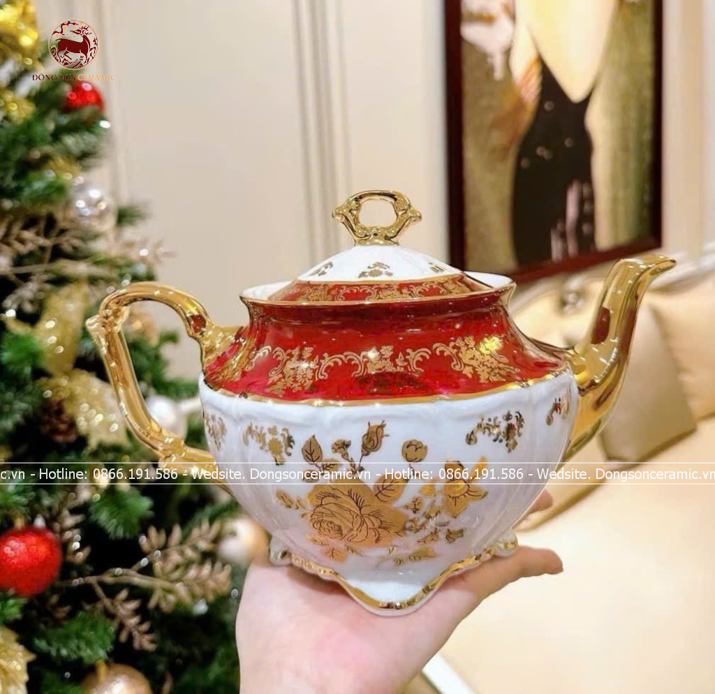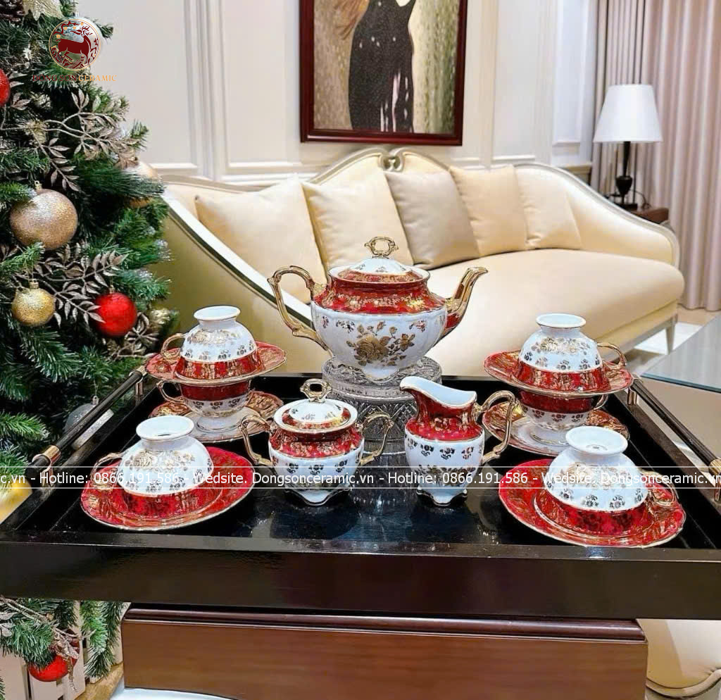 Bộ ấm chén Bát Tràng men đỏ Hào Gia Phú Quý đầy đủ 16 vật phẩm cao cấp