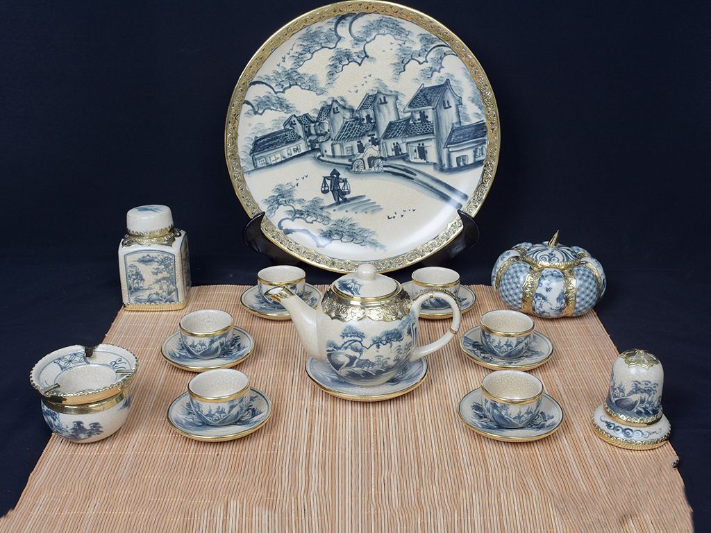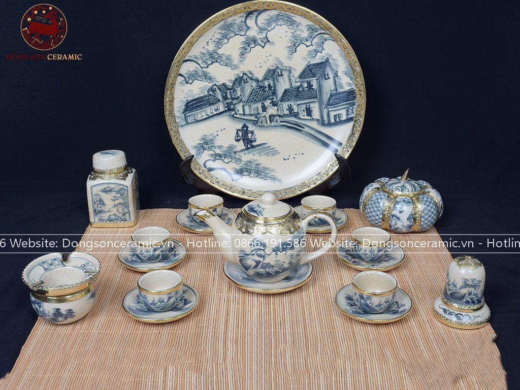 Bộ ấm chén men rạn bọc đồng dáng minh long đầy đủ 19 vật phẩm