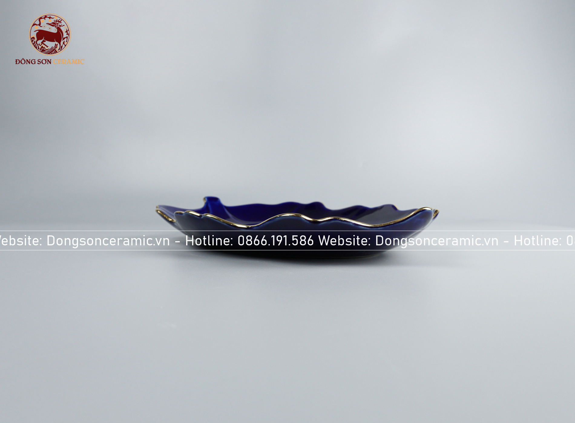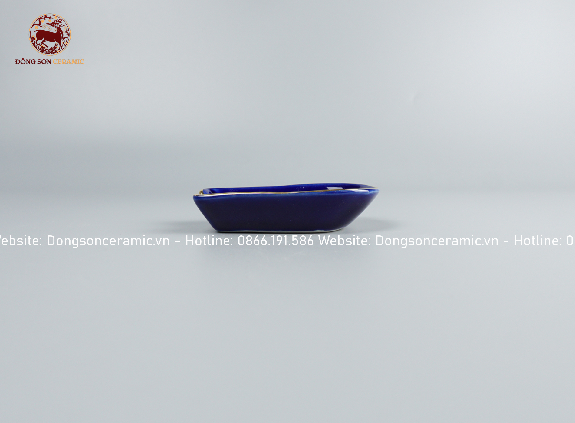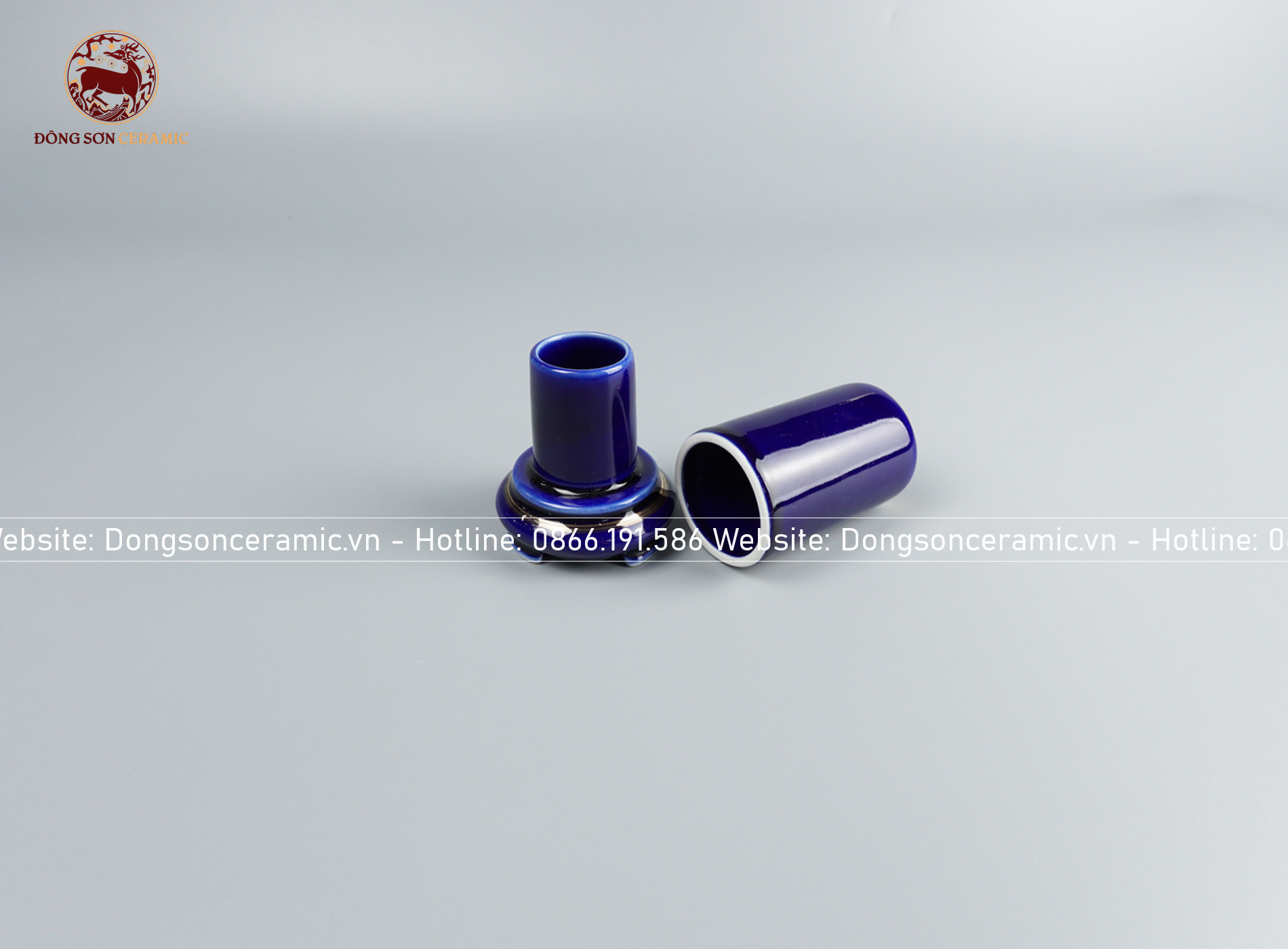 Bộ bát ăn gốm sứ Bát Tràng men xanh coban viền vàng 28 vật phẩm