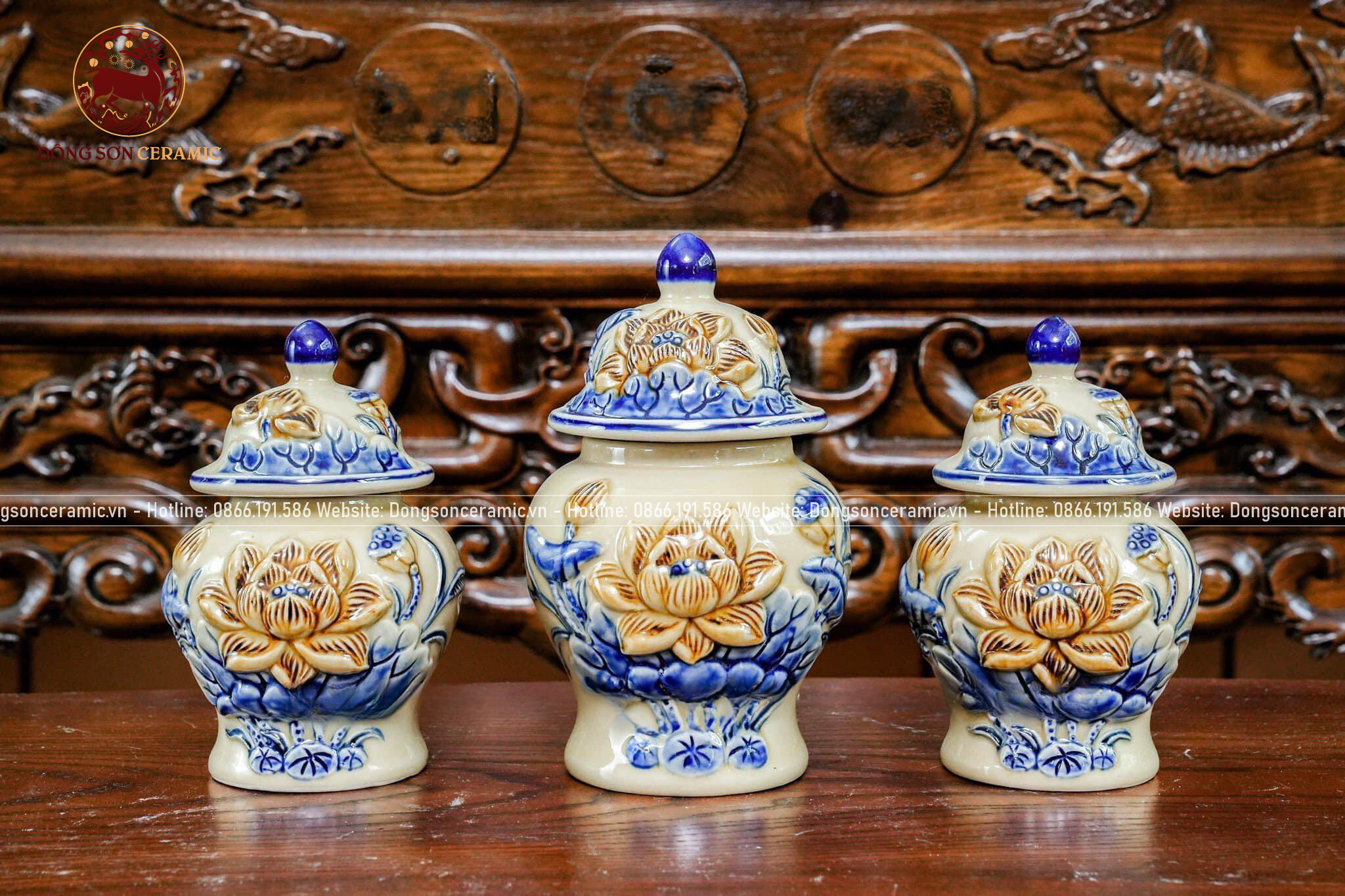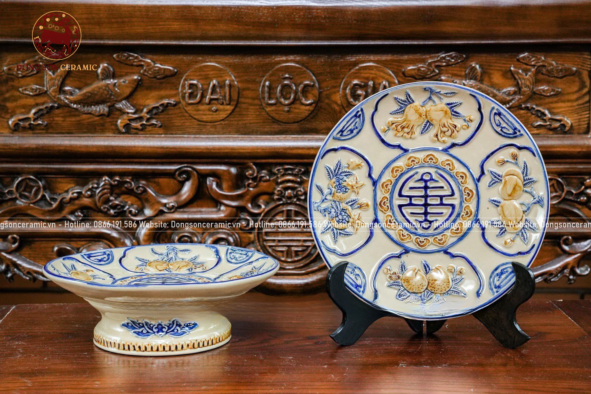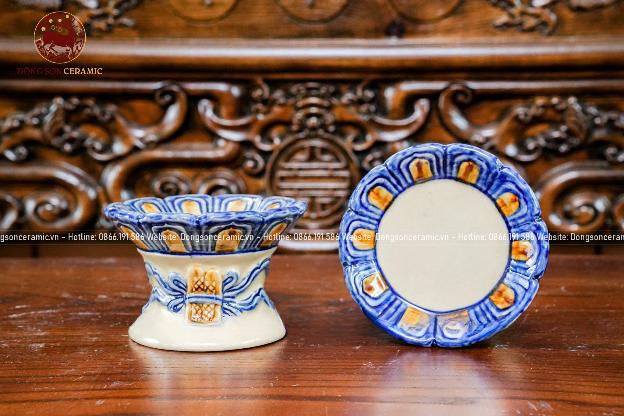 Bộ Đồ Thờ Bát Tràng họa tiết đắp nổi men hoàng thổ 19 vật phẩm | Bộ Thờ Cúng Gia Tiên đầy đủ