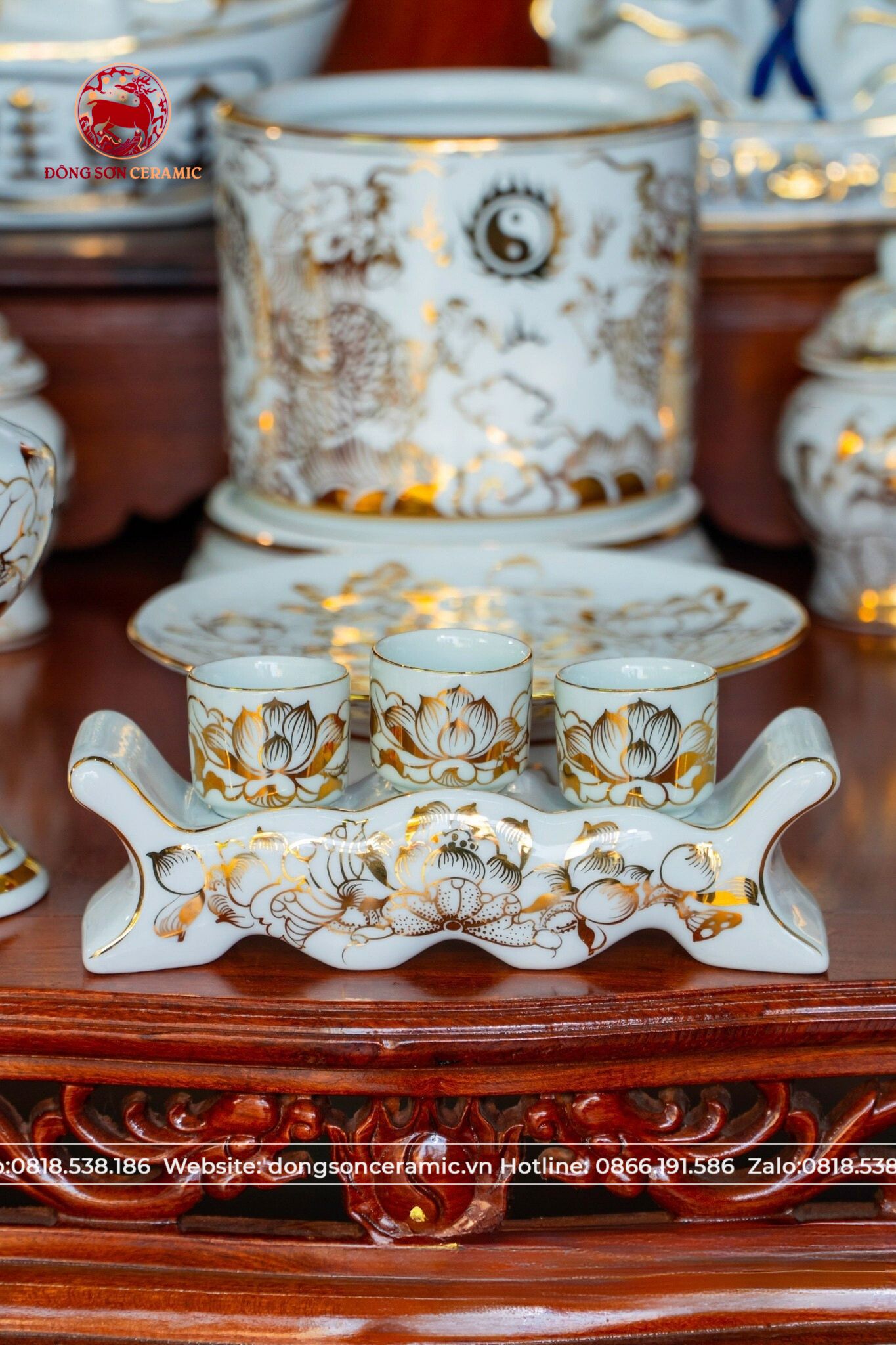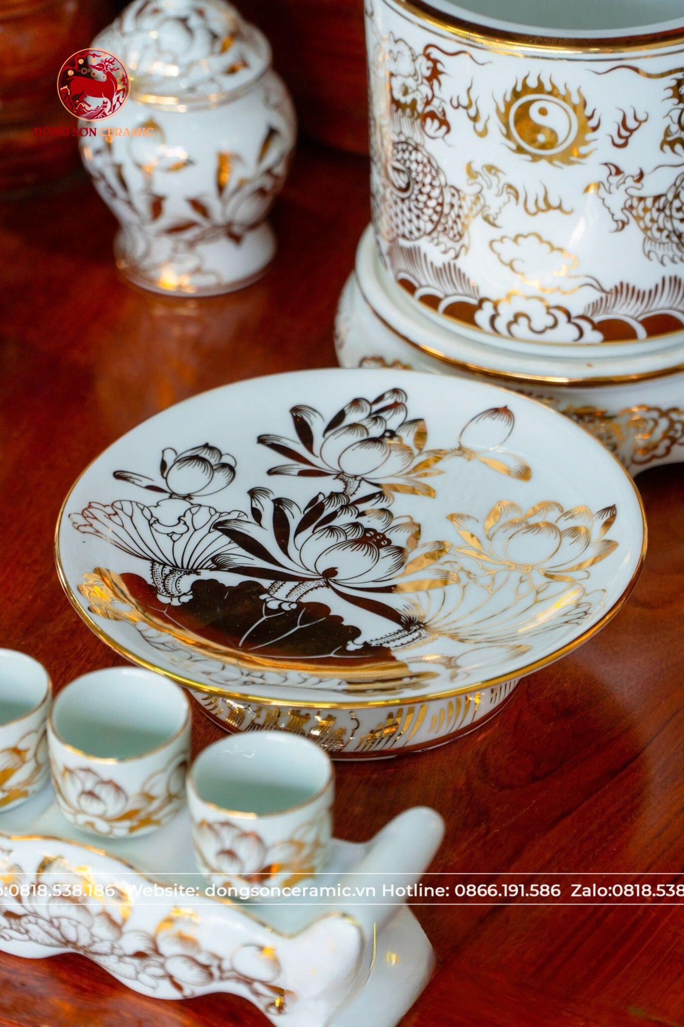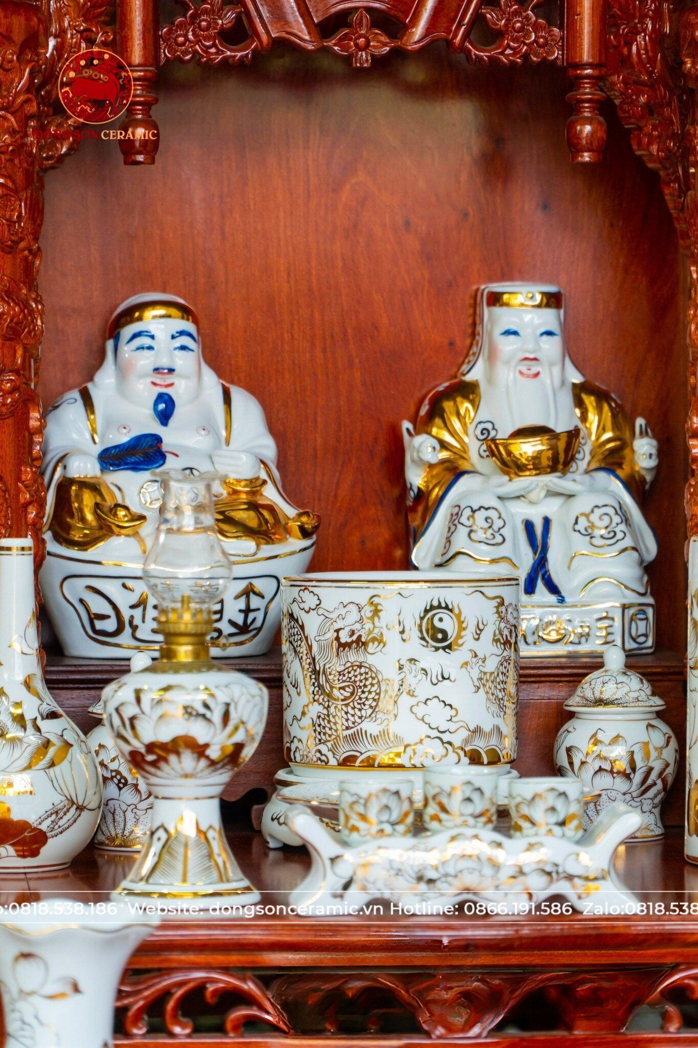 Bộ Đồ Thờ Bát Tràng vẽ vàng cung tiến thần tài thổ địa cao 50cm | Đồ Thờ Gốm Bát Tràng