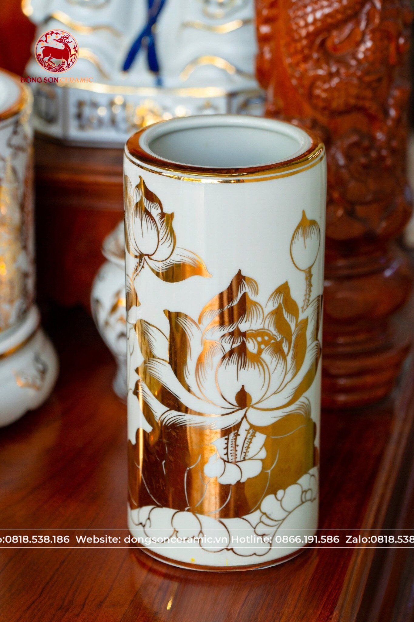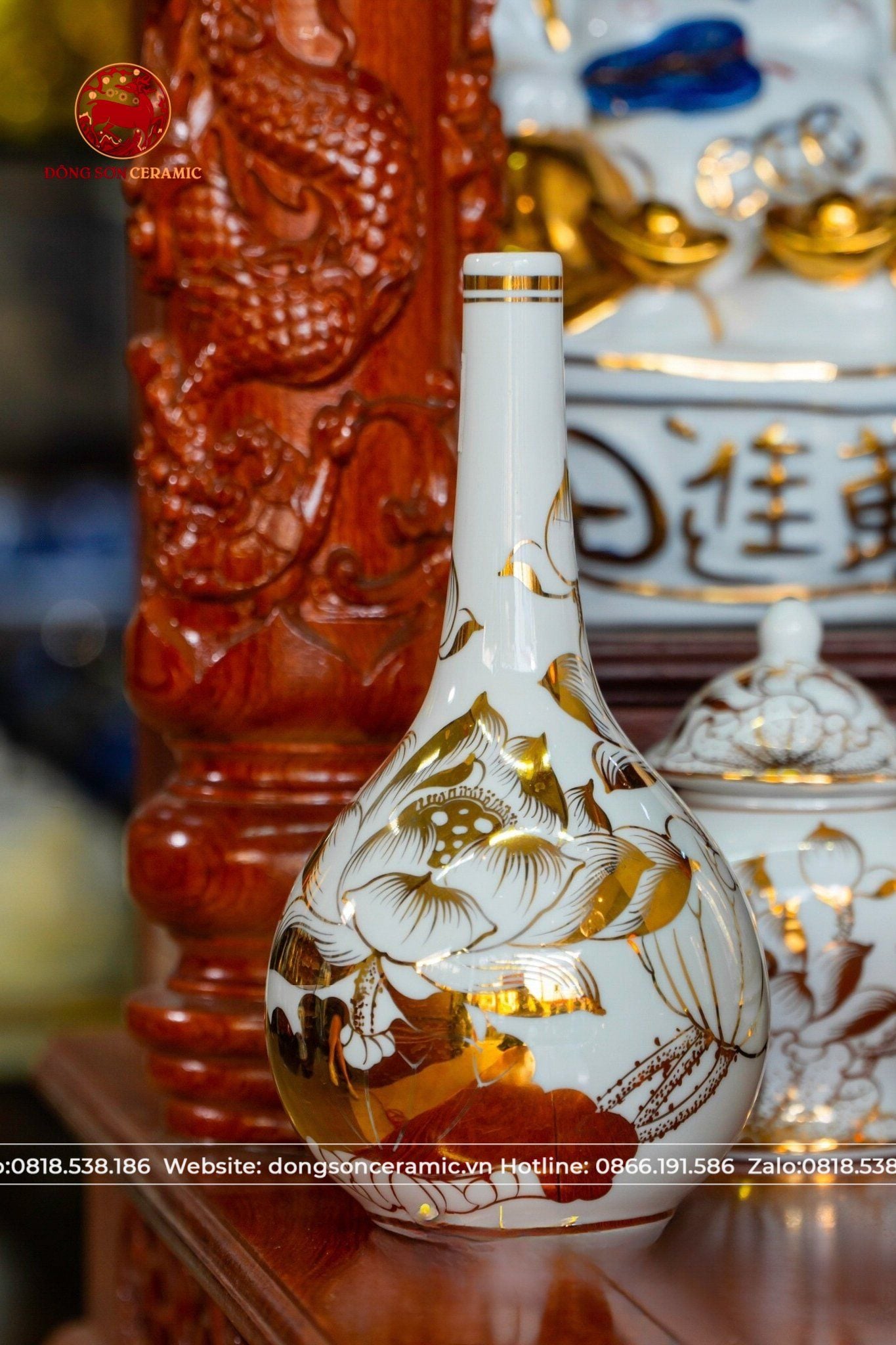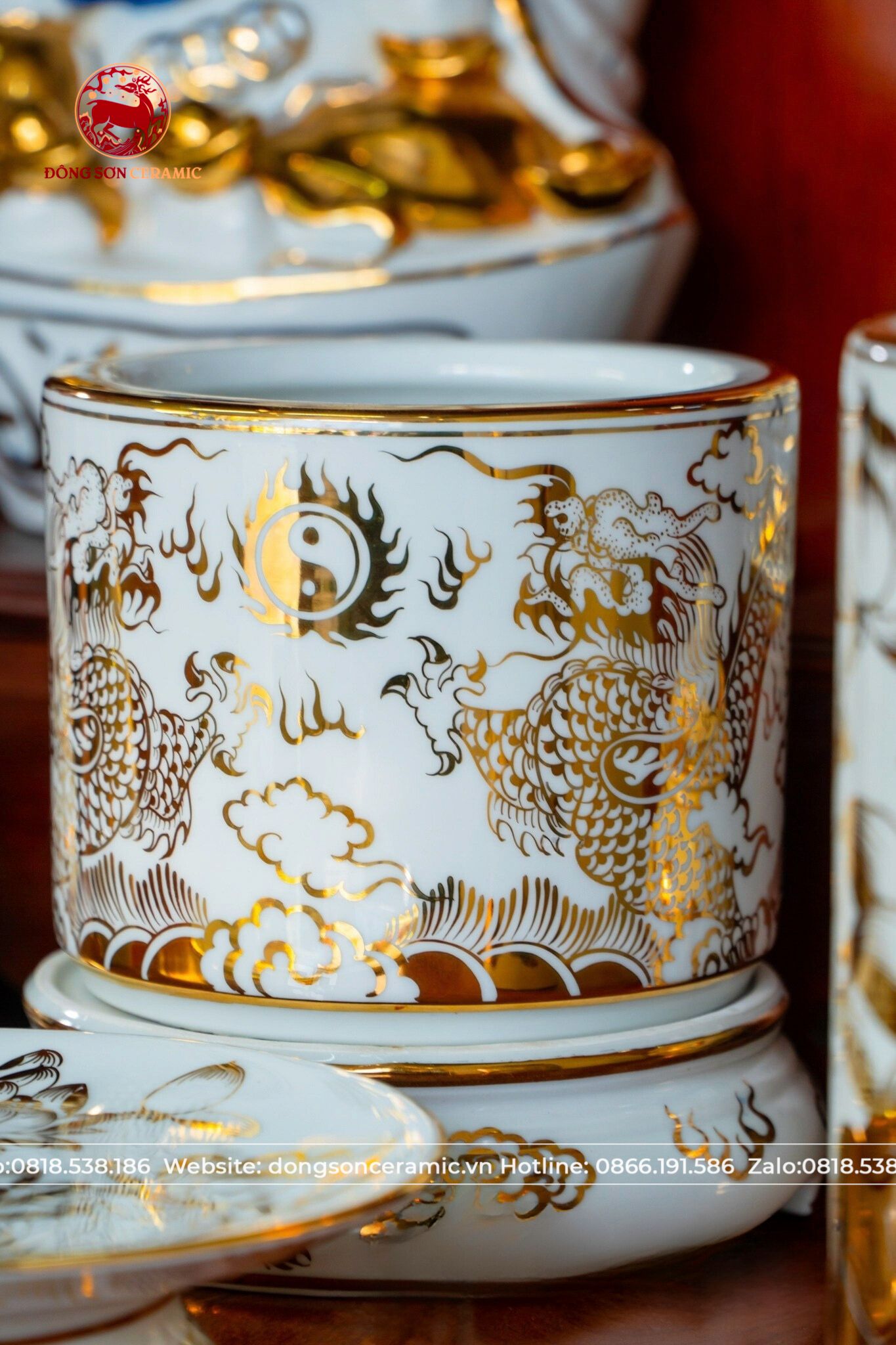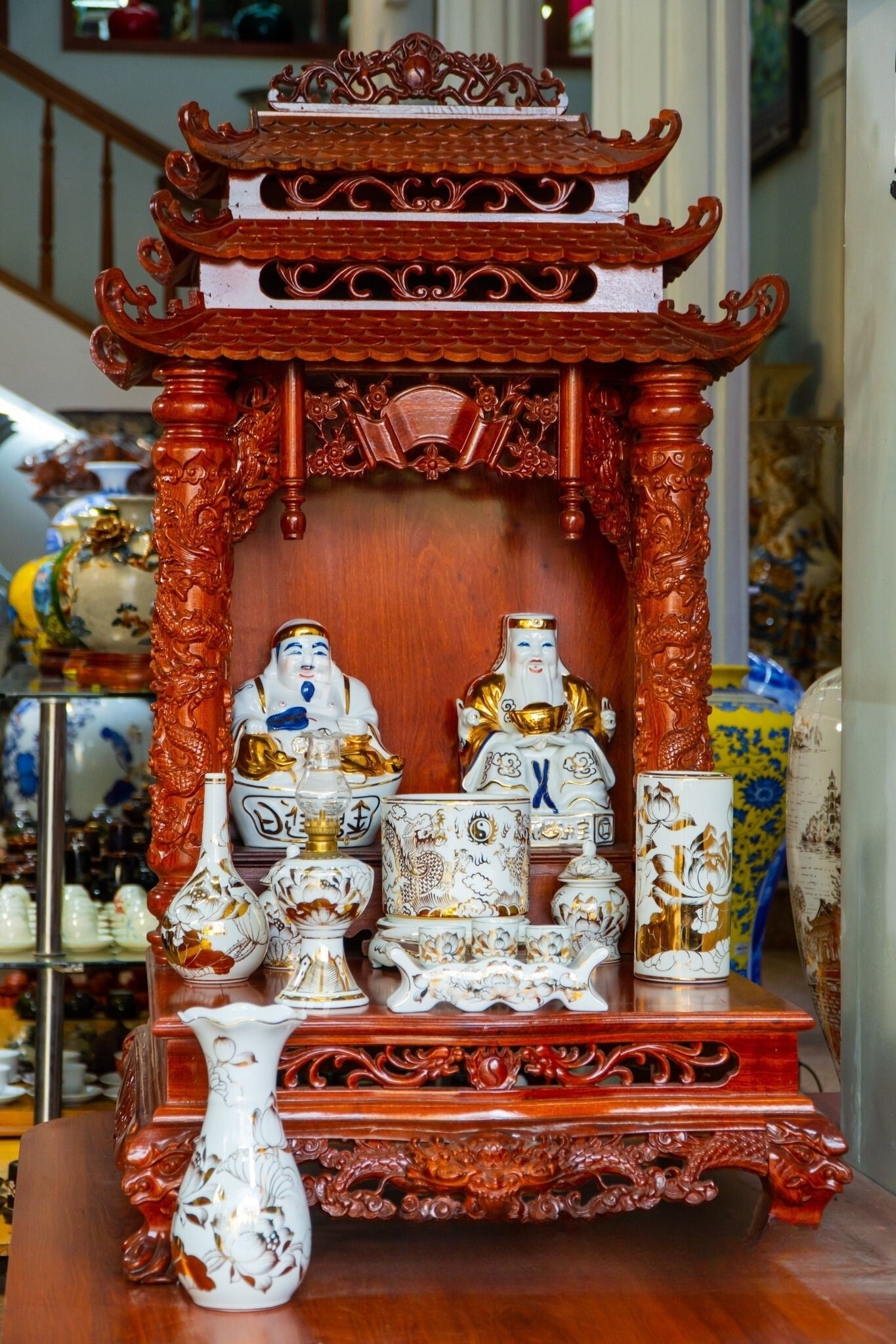 Bộ Đồ Thờ Bát Tràng vẽ vàng cung tiến thần tài thổ địa cao 50cm | Đồ Thờ Gốm Bát Tràng