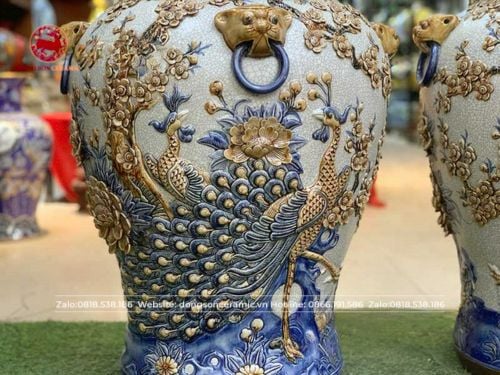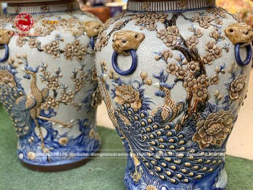 Chóe bầy công đào men rạn đắp nổi cao 75cm