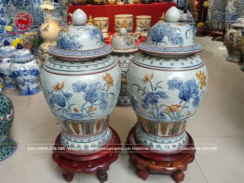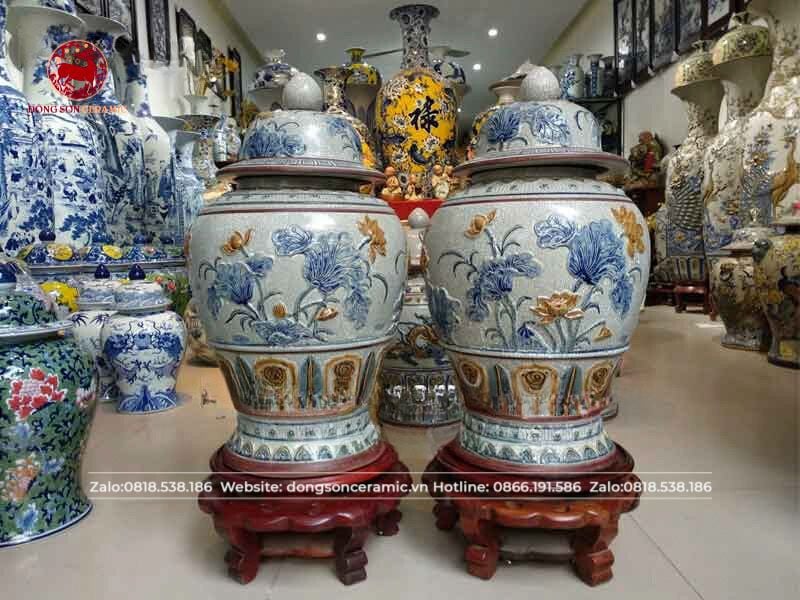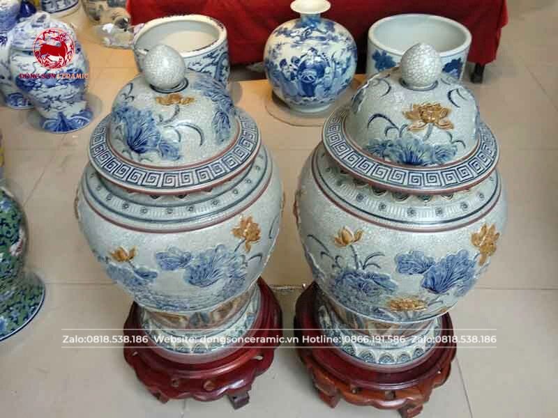 Chóe hoa sen men rạn đắp nổi cao 60cm