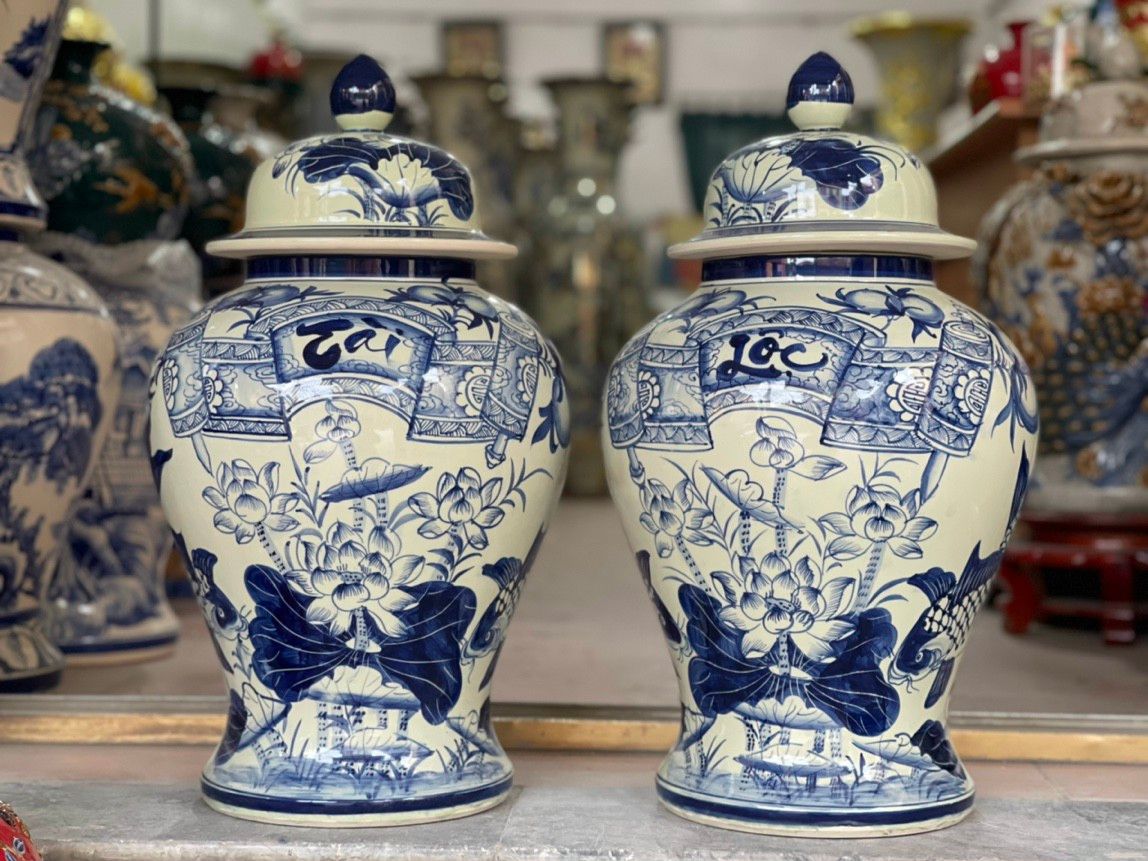 Chóe tài lộc men lam vẽ kĩ dung tích 35L