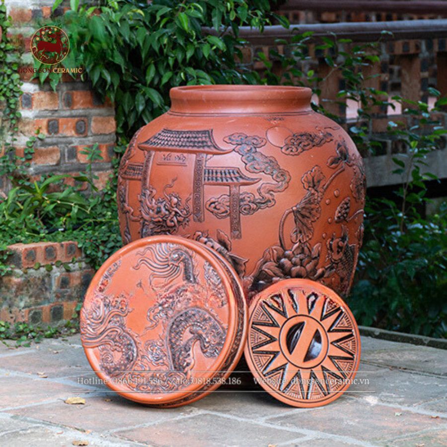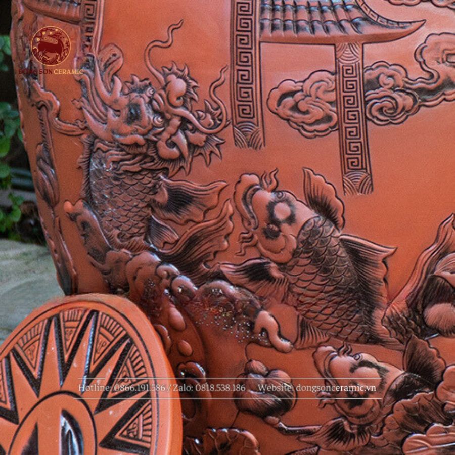 Chum Sành cá chép vượt vũ môn 100 lít | Quà Tặng Cao Cấp chum sành