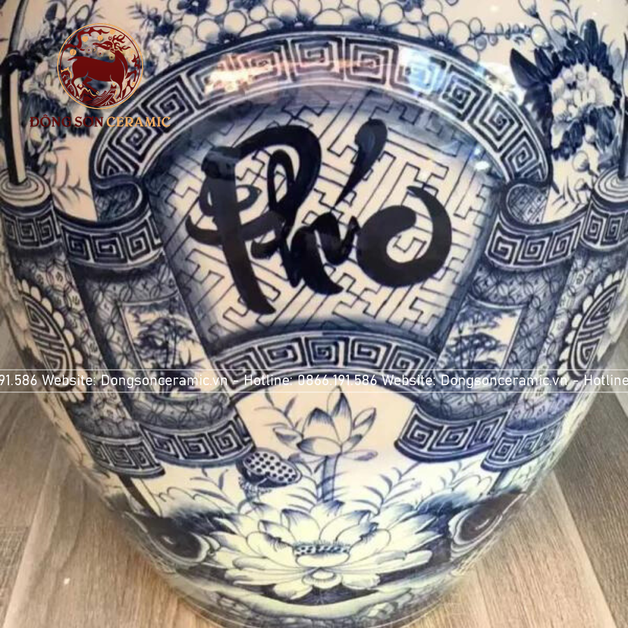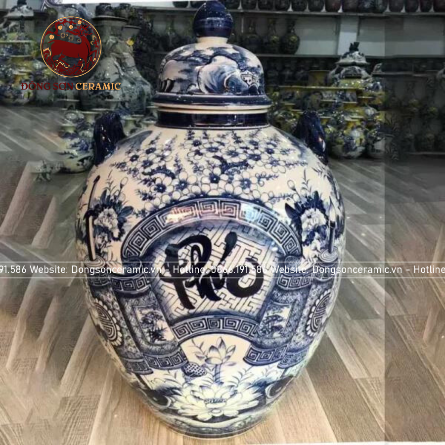 Chum vò sứ Bát Tràng chữ phúc ngâm rượu 30 lít | Quà Tặng Cao Cấp chum sành