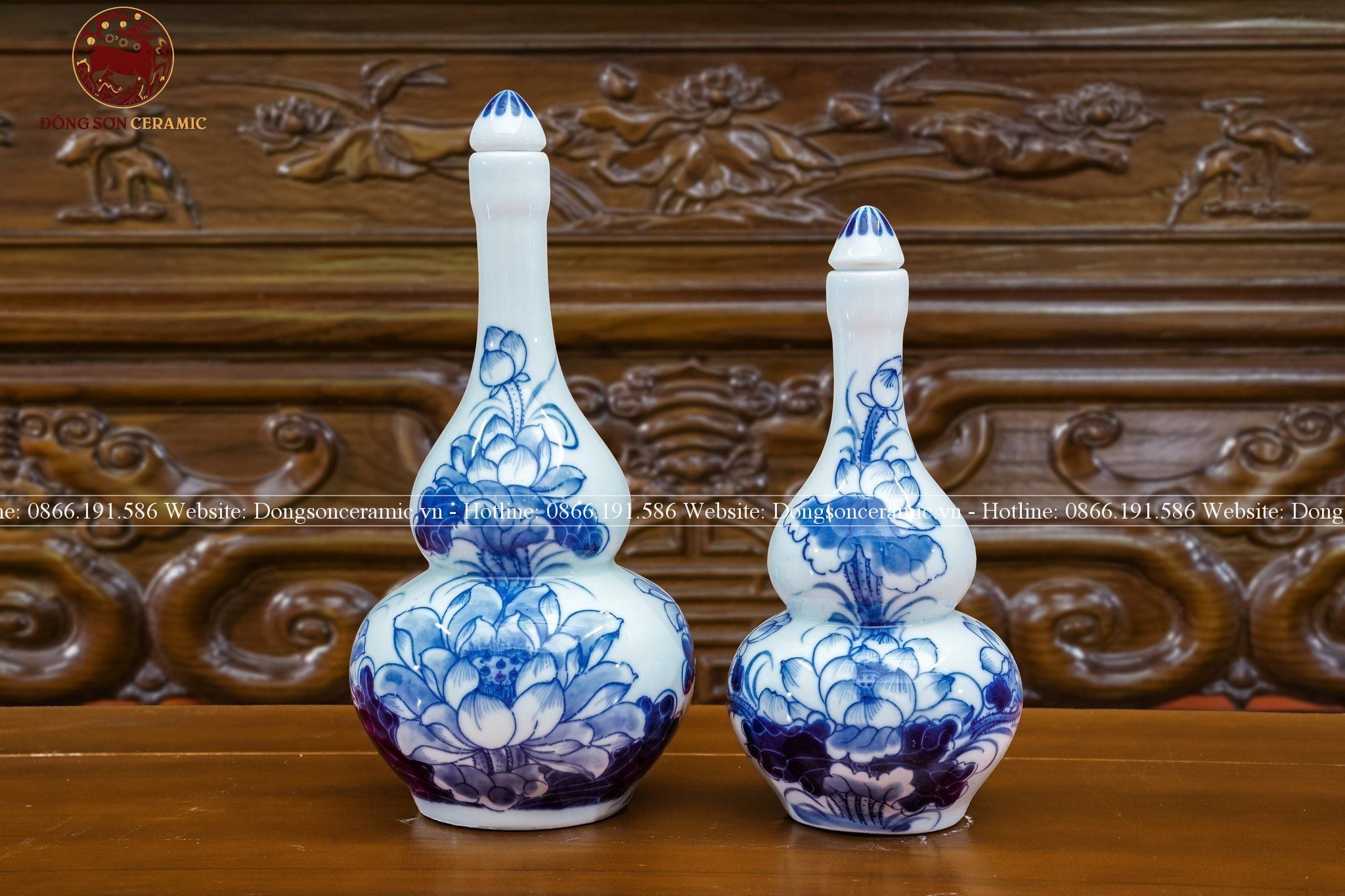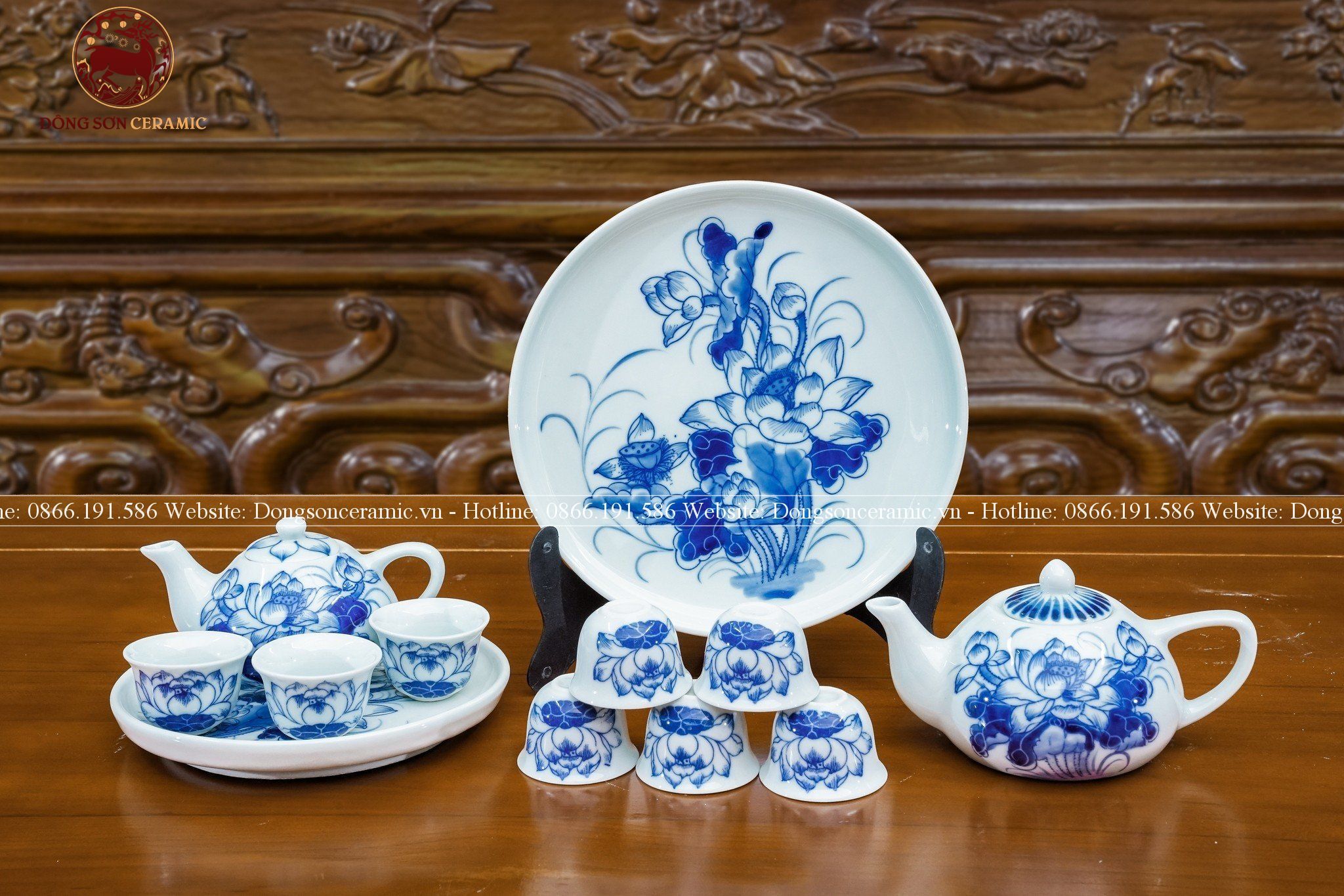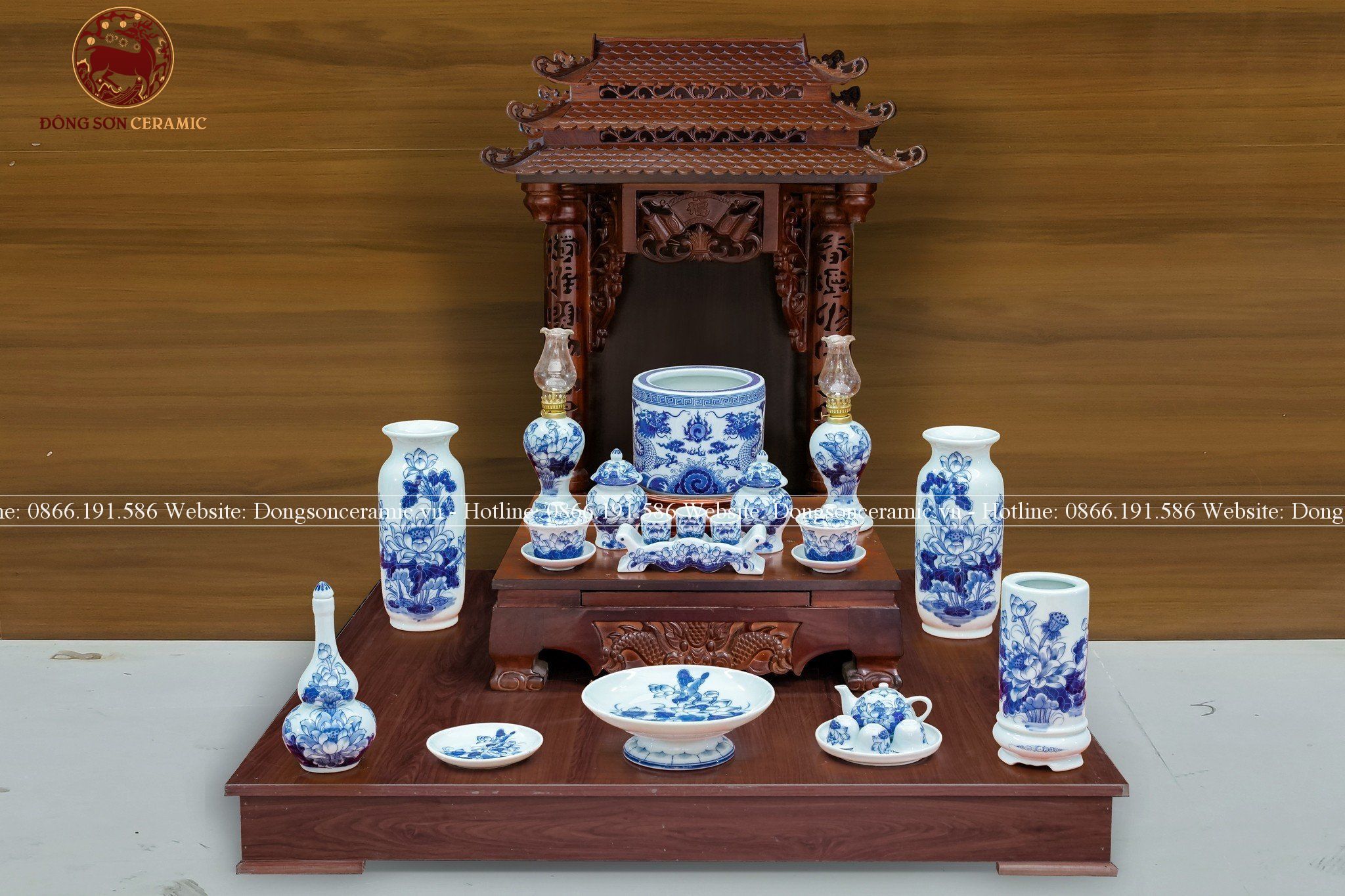 Bộ Đồ Thờ Bát Tràng dâng ban thờ thần tài thổ địa men lam vẽ kĩ 15 vật phẩm | Đồ Thờ Gốm Bát Tràng