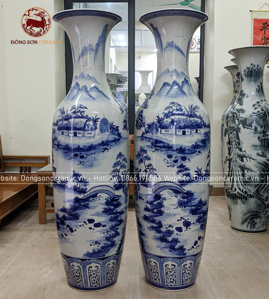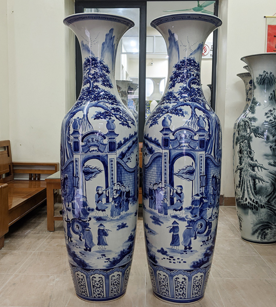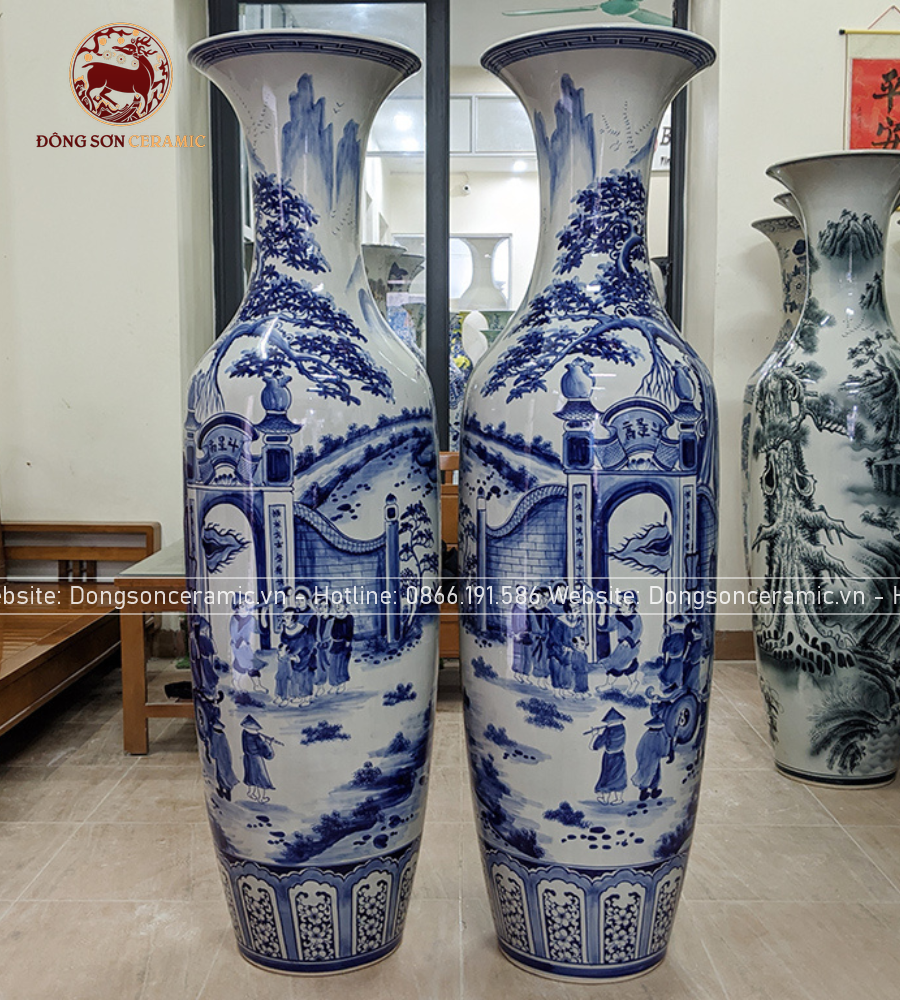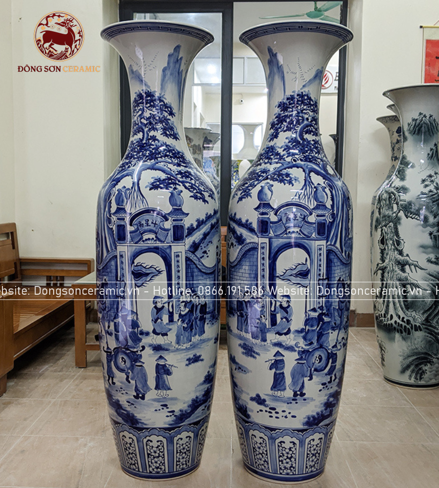 Lục Bình Bát Tràng họa tiết vinh quy bái tổ men lam vẽ kĩ 1m6 | Quà Tặng Cao Cấp lục bình gốm