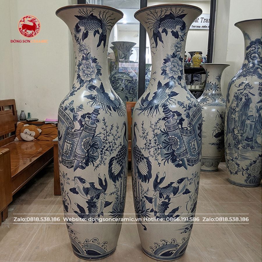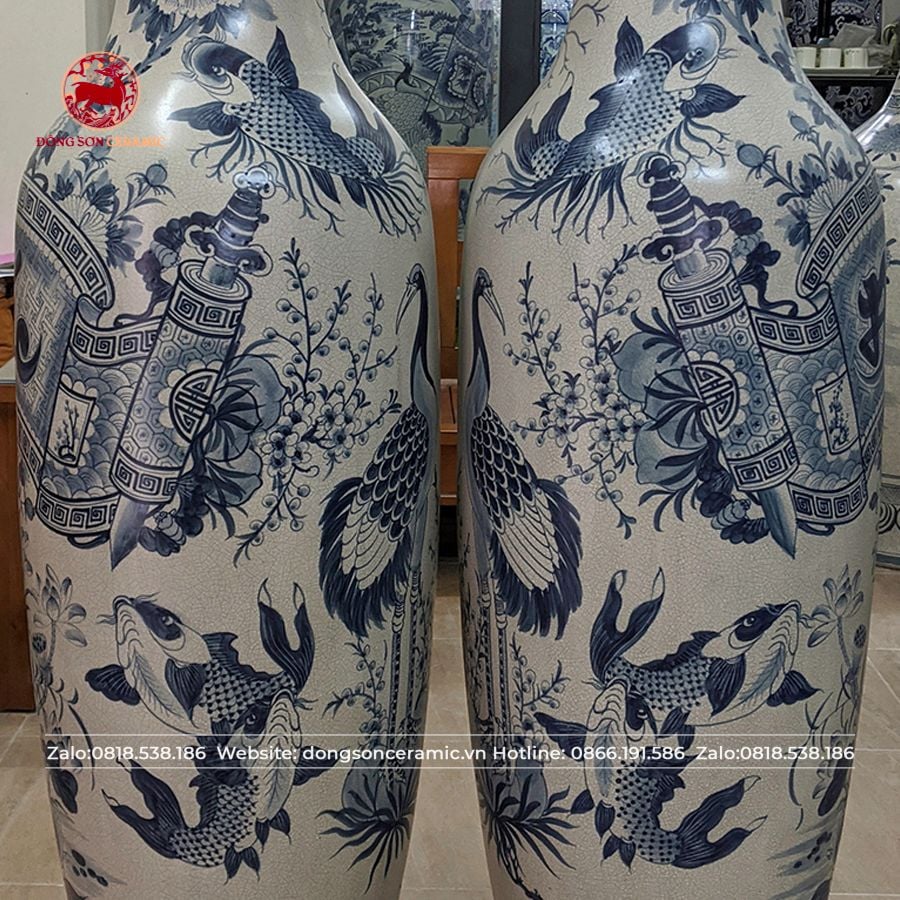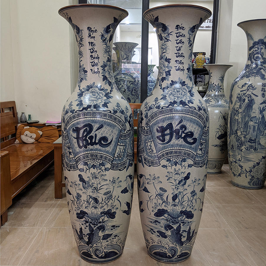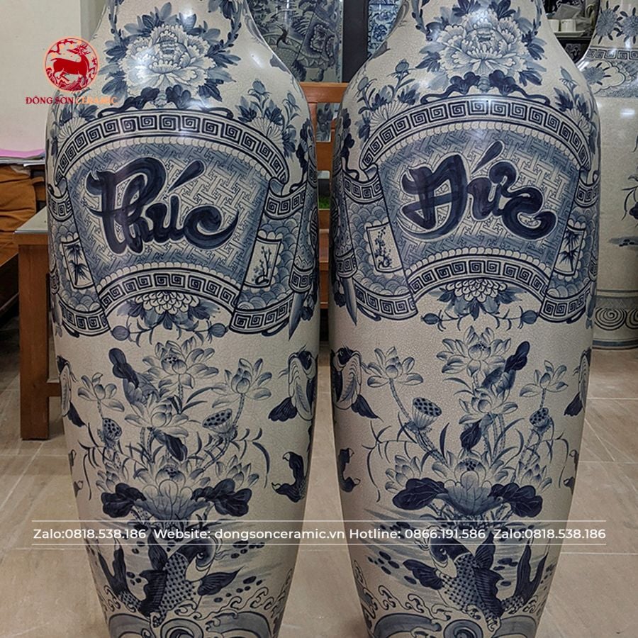 Lục Bình Bát Tràng men rạn Đức Phúc kích thước 1m4 | Quà Tặng Cao Cấp lục bình gốm