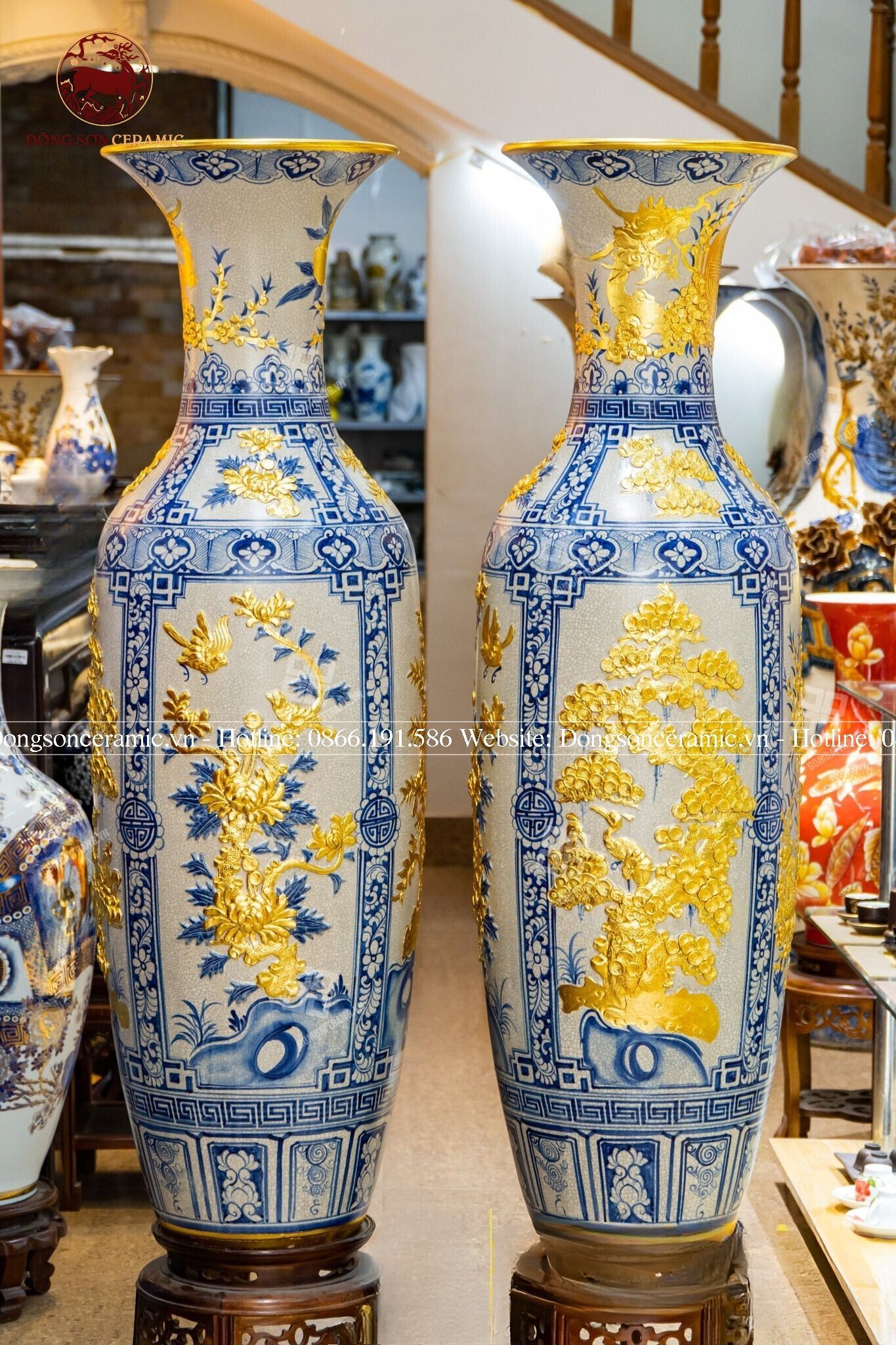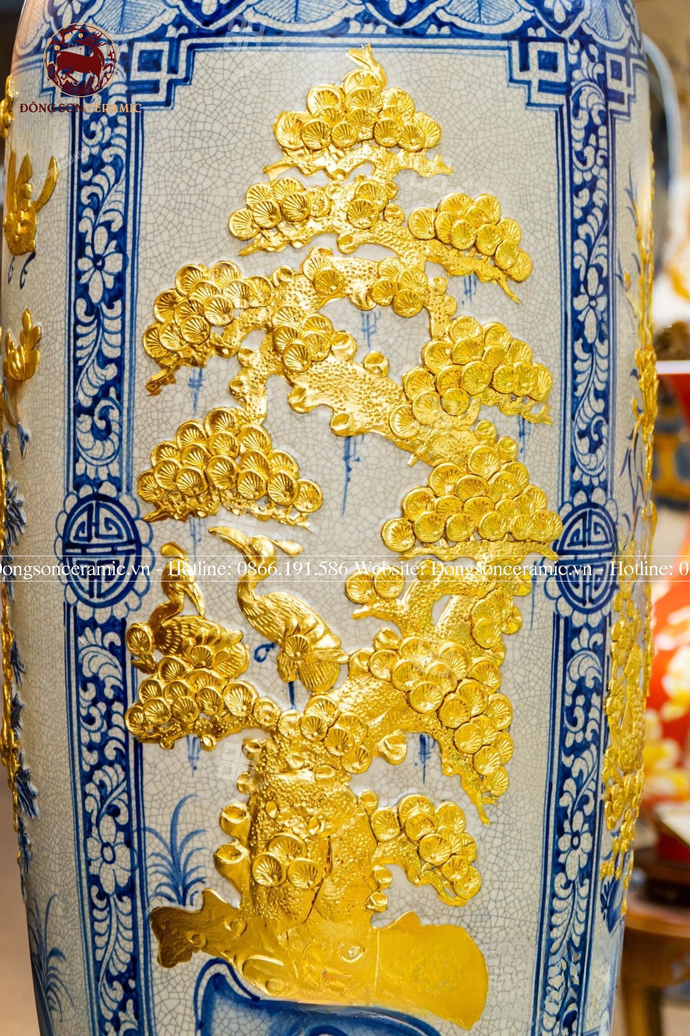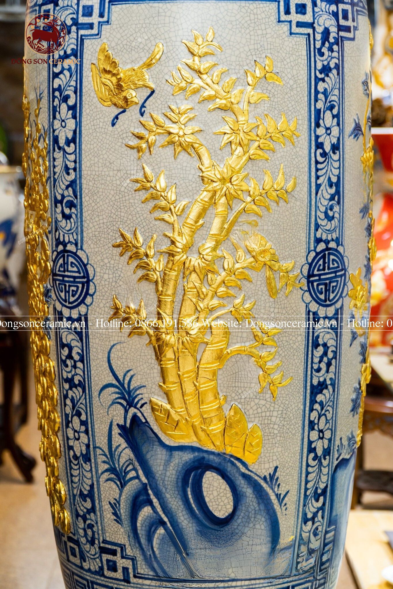 Lục Bình Bát Tràng tứ cảnh men rạn thếp vàng kích thước 1m6 | Quà Tặng Cao Cấp lục bình gốm