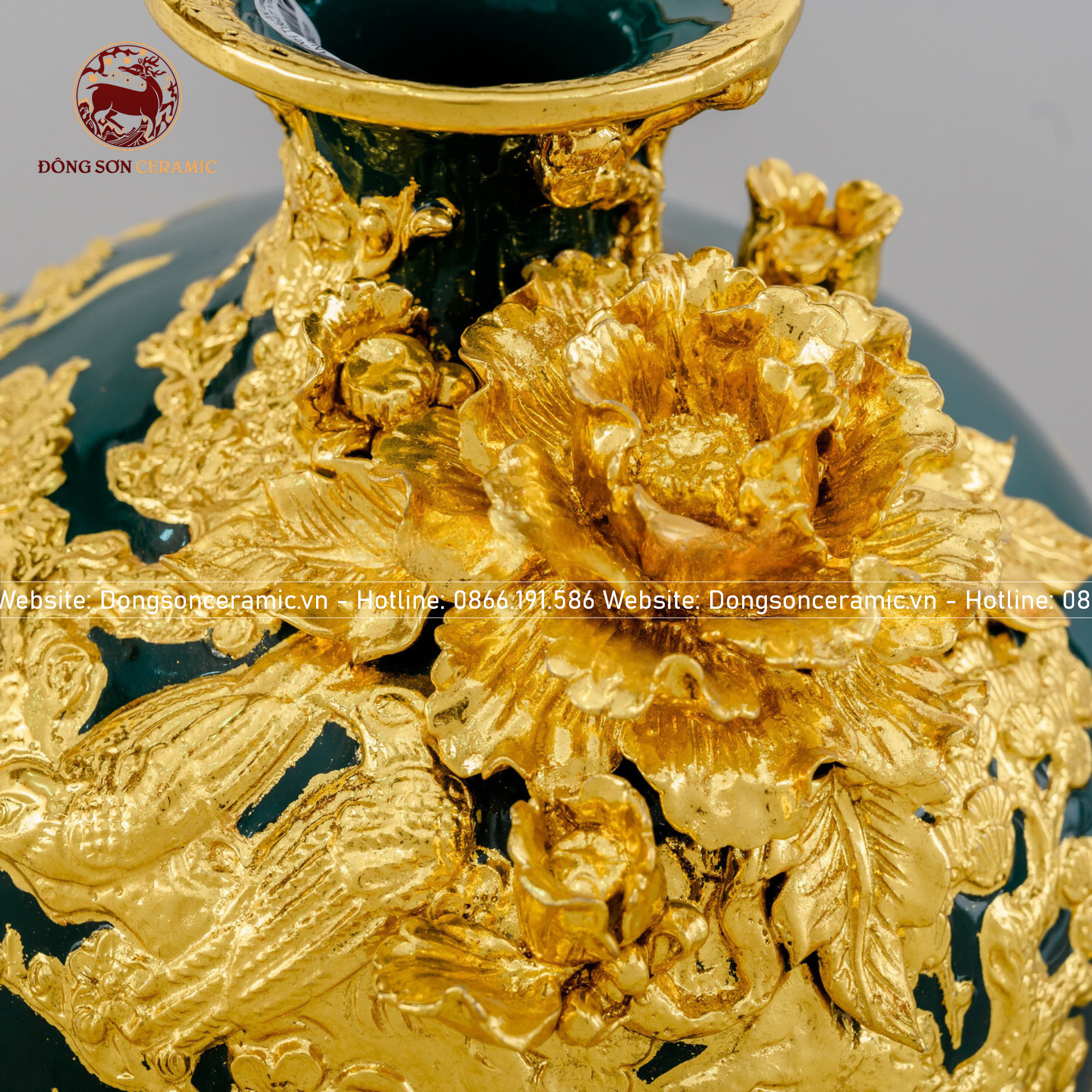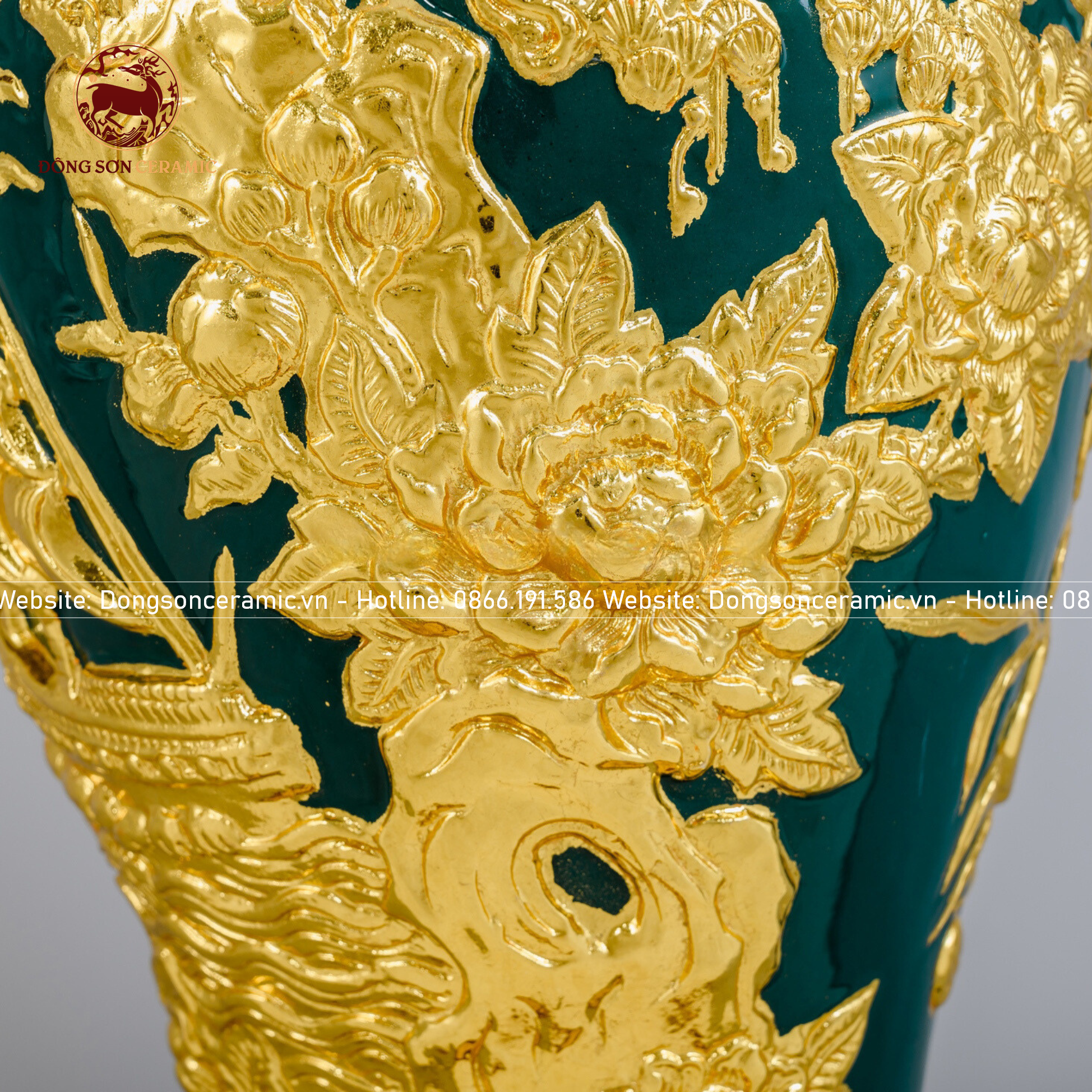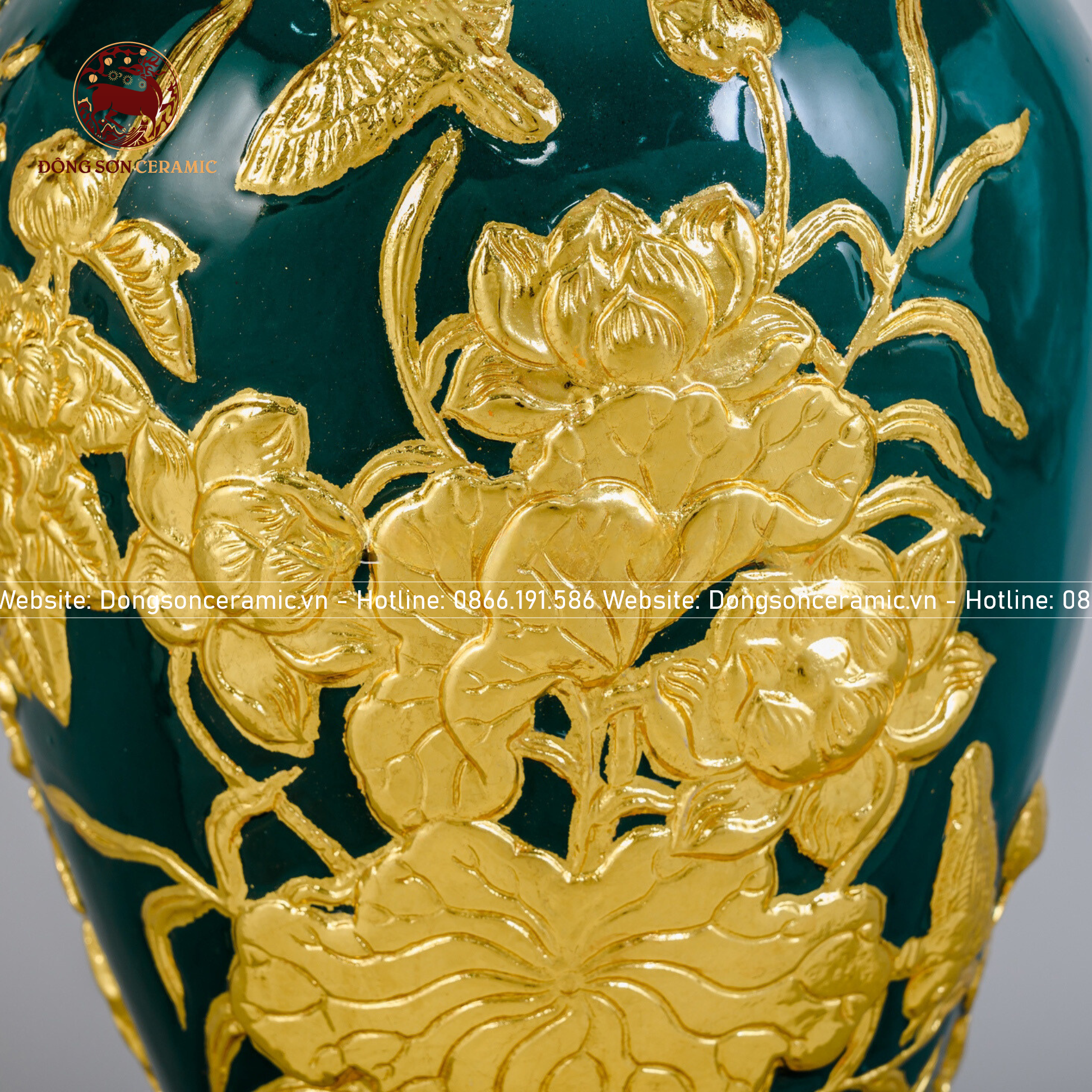 Mai bình thuận buồm xuôi gió men xanh lục bảo đắp nổi dát vàng kích thước cao 55cm