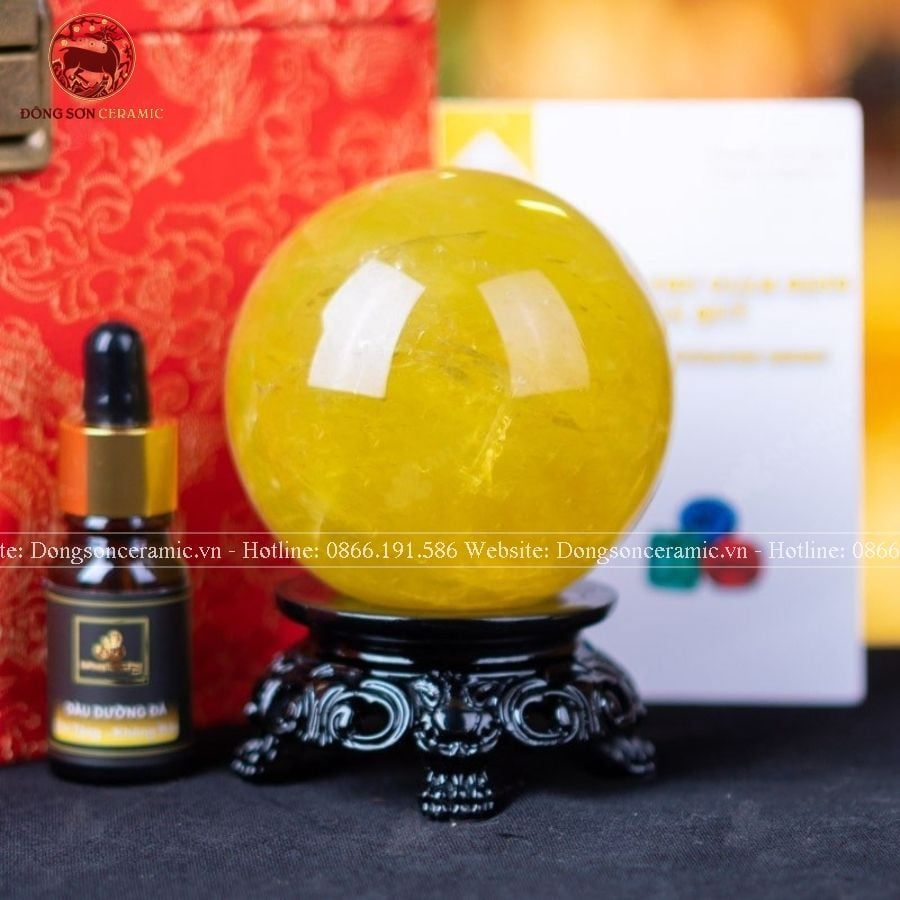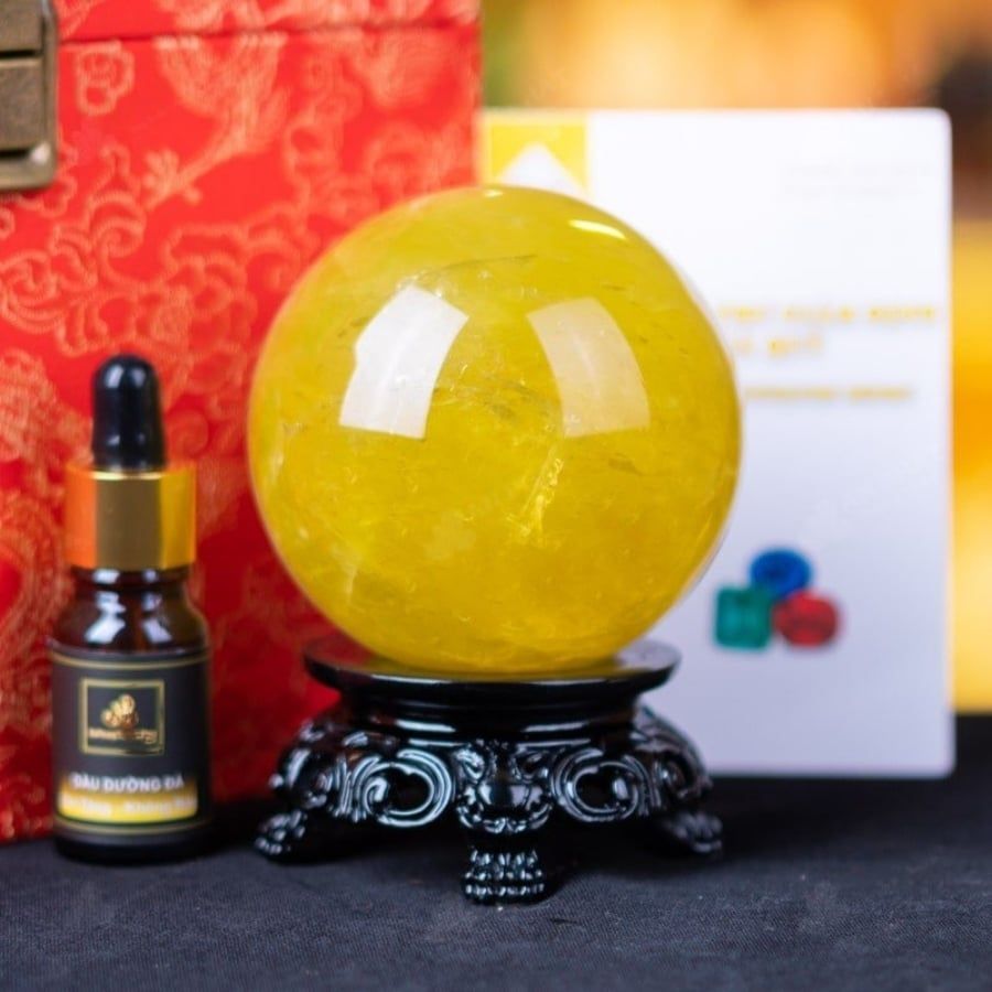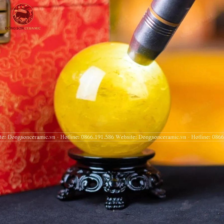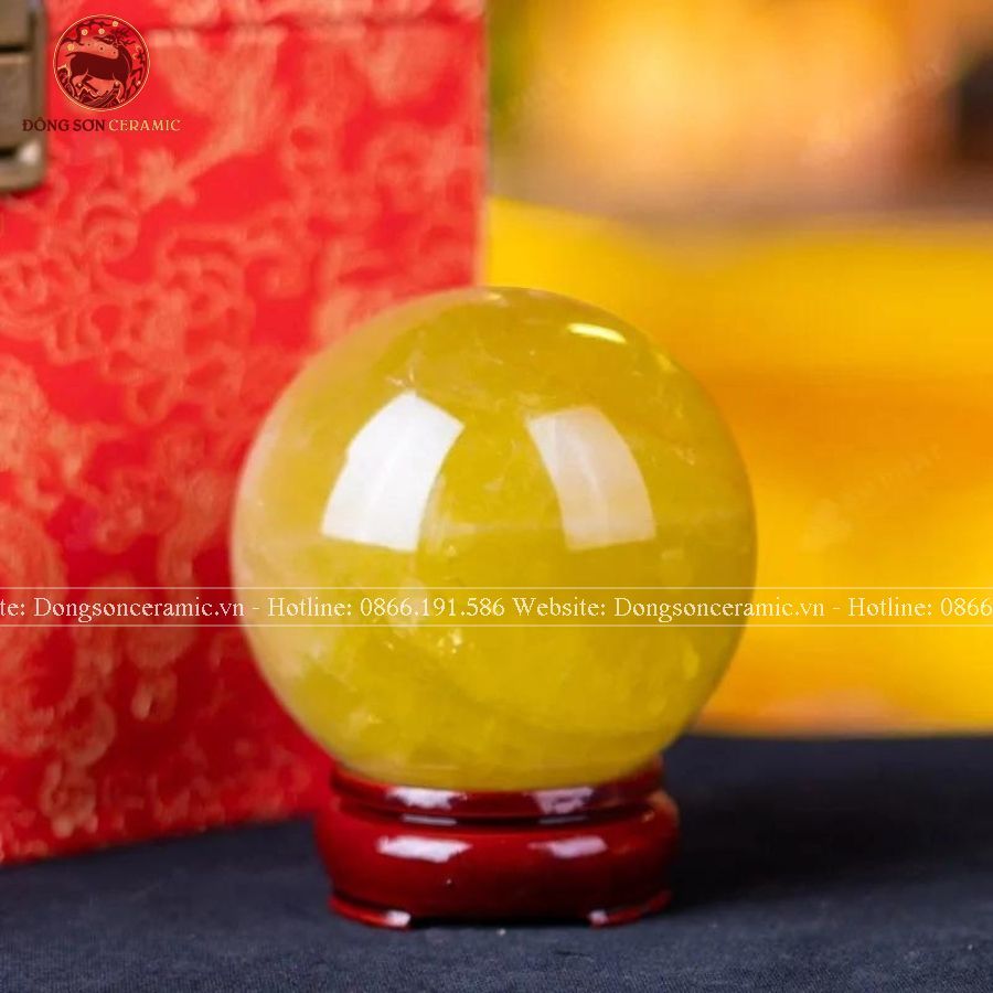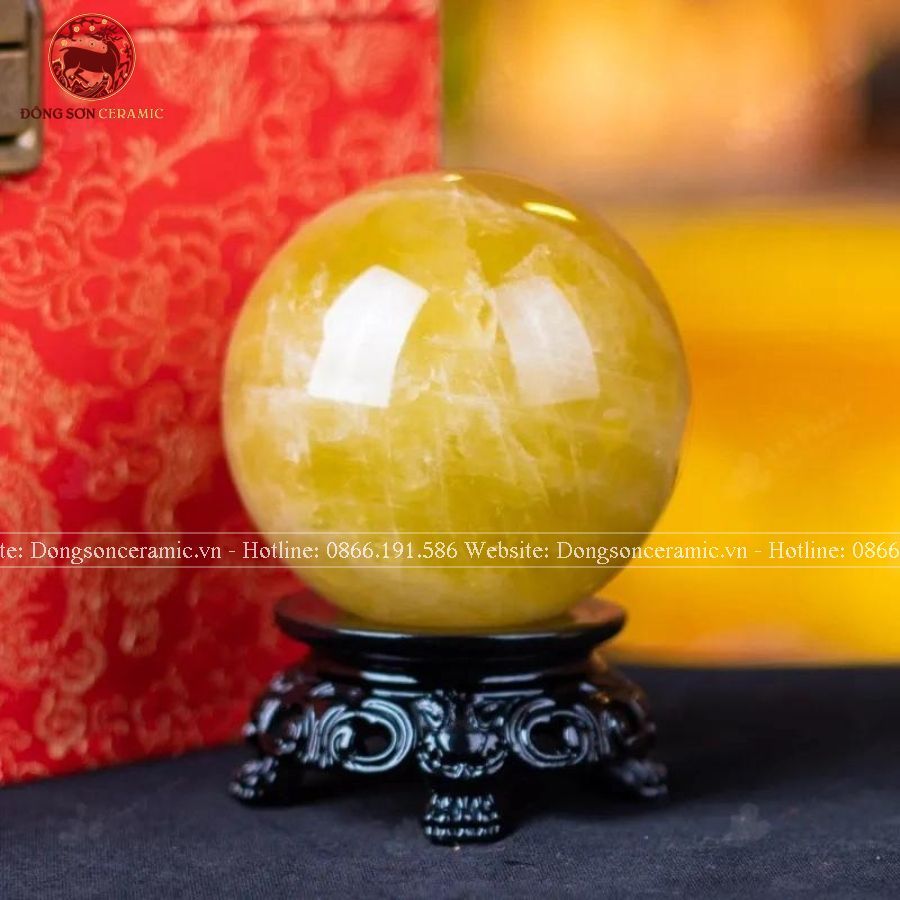 Quà Tặng Sếp Quả Cầu Phong Thủy Đá Thạch Anh vàng đường kính 7,6cm