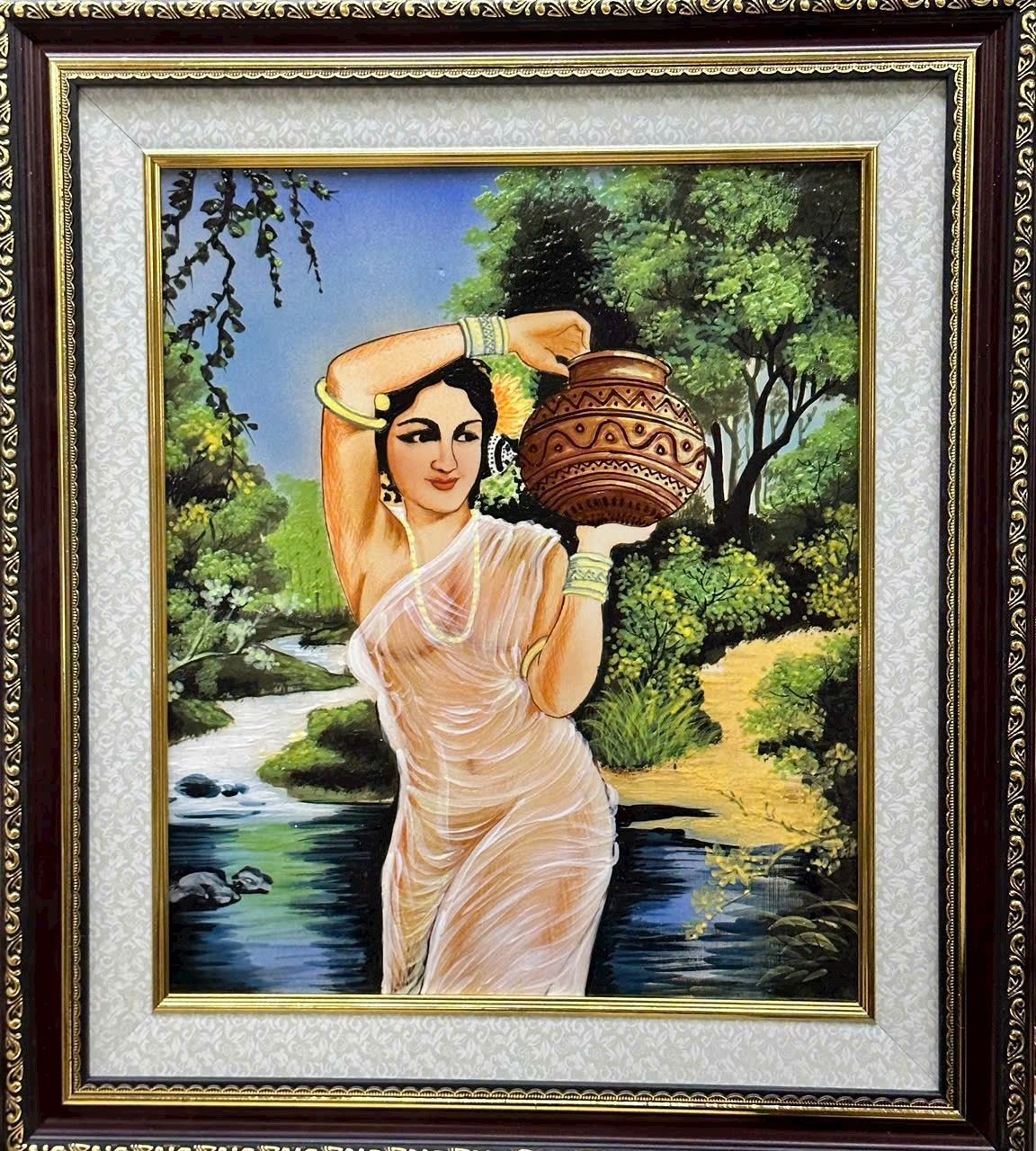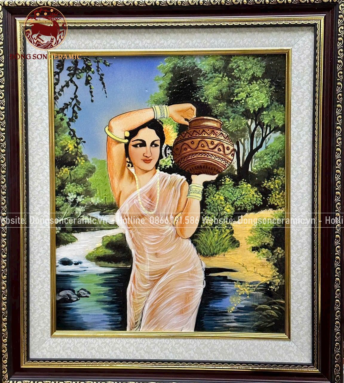 Tranh sứ Bát Tràng họa tiết cô gái men màu kích thước 56cm x 48cm
