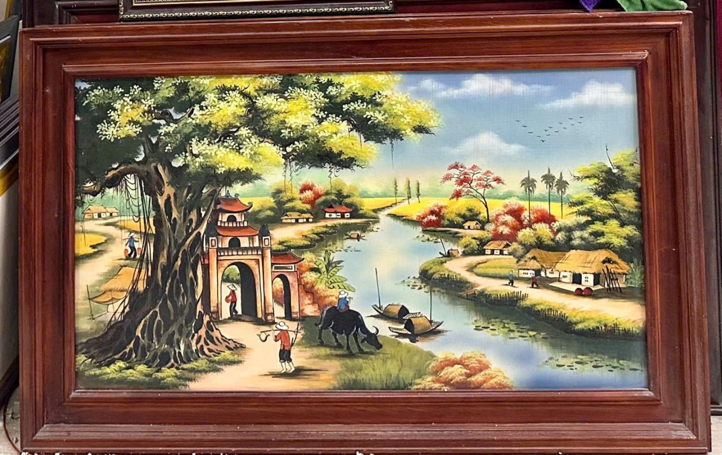 Tranh sứ Bát Tràng phong cảnh đồng quê kích thước 127x78cm