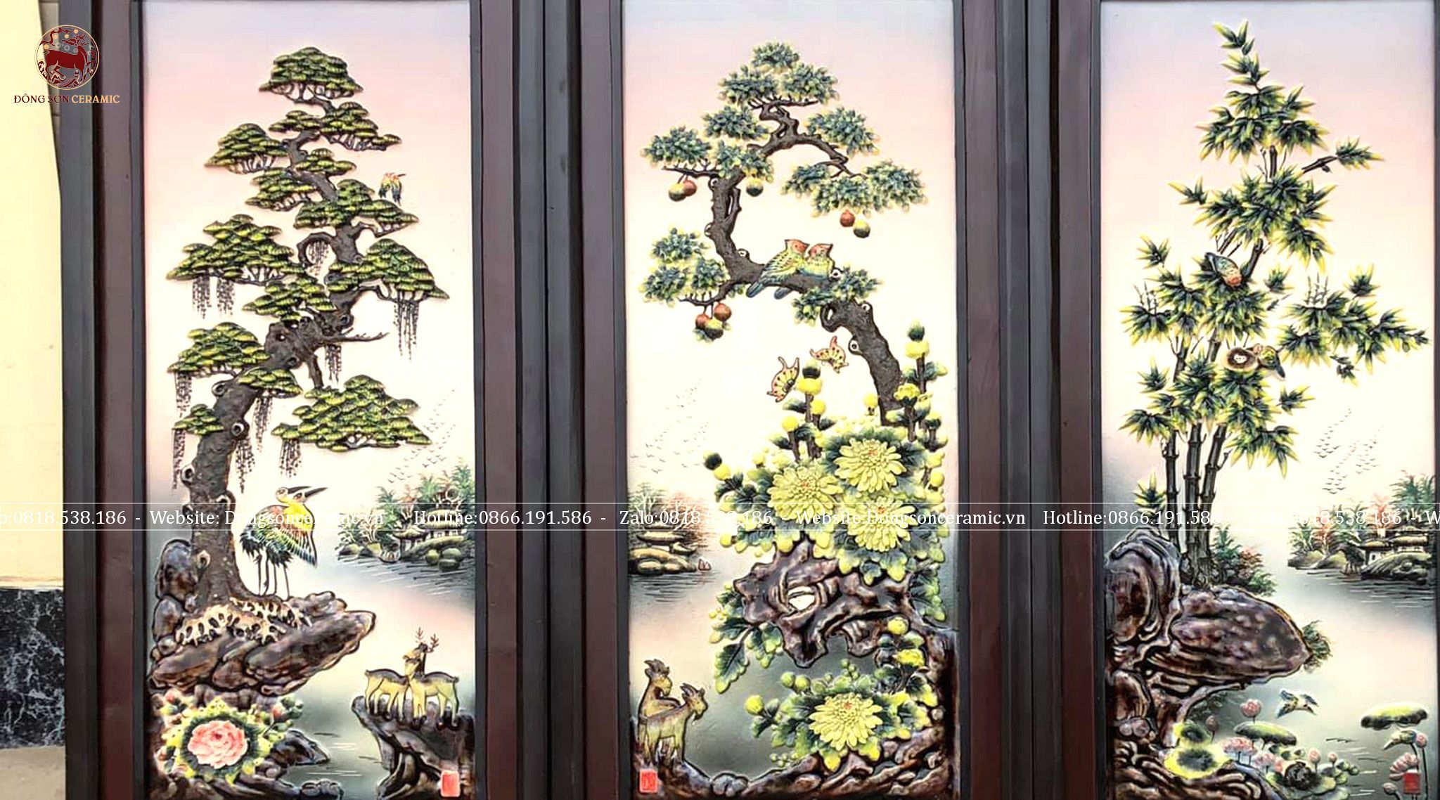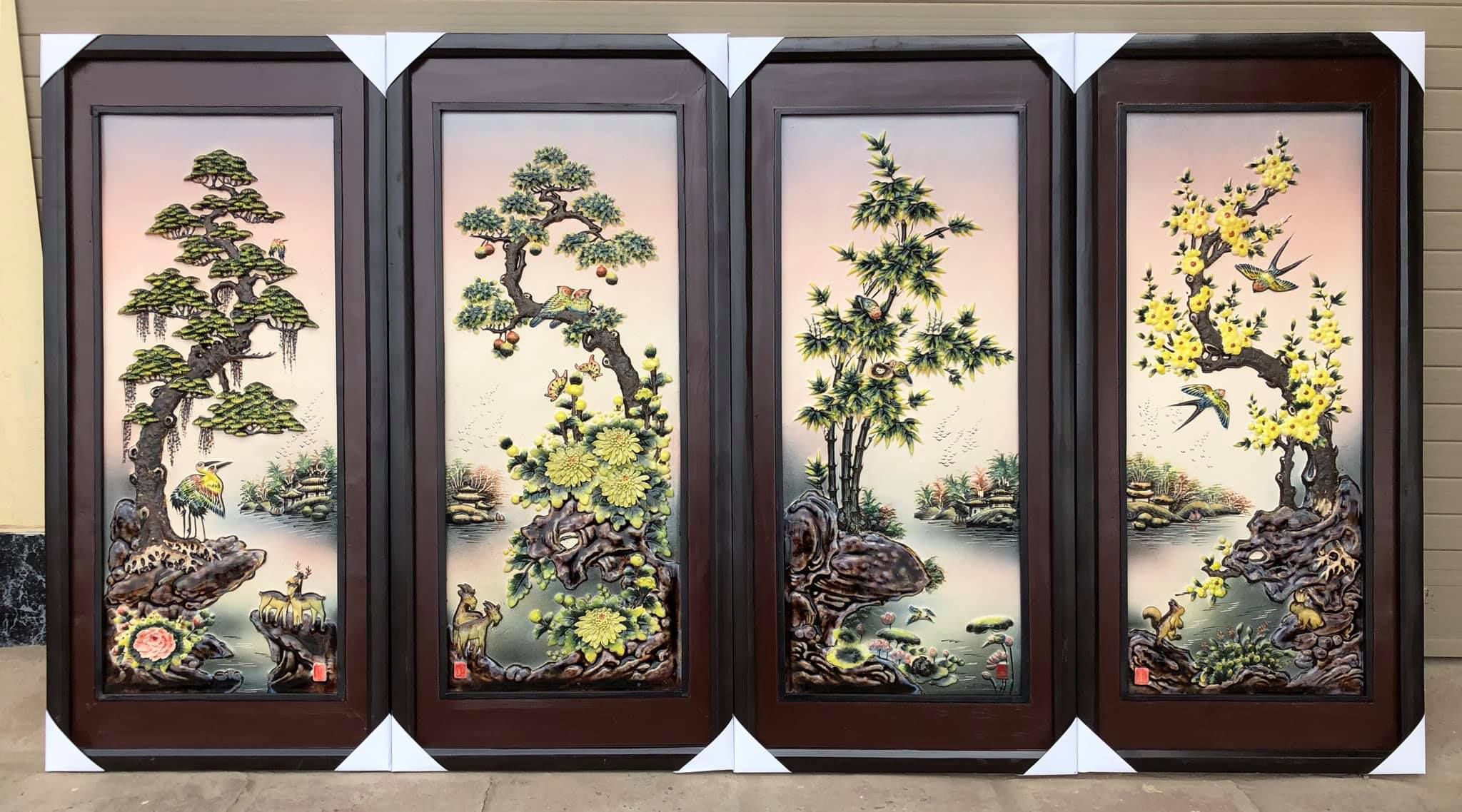 Tranh Tứ Quý bằng sứ cao cấp kích thước 96x43cm đắp nổi | Quà Tặng Bố tranh tứ quý Bát Tràng