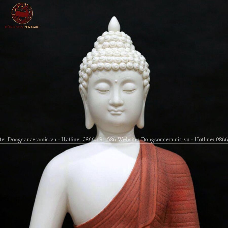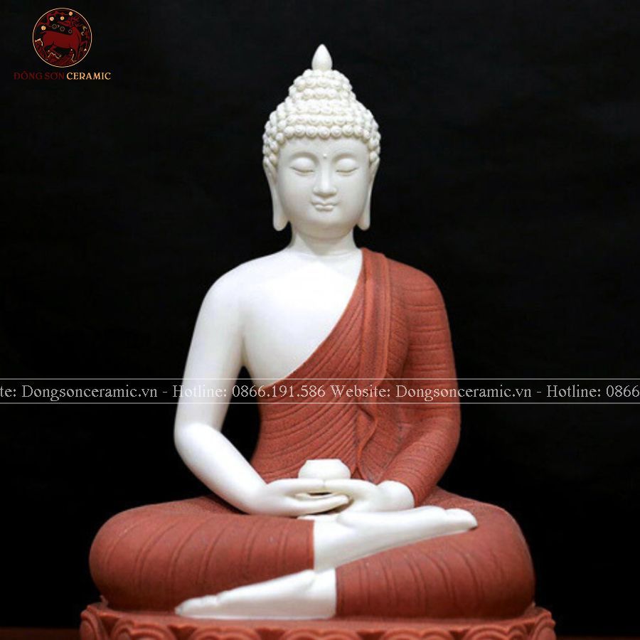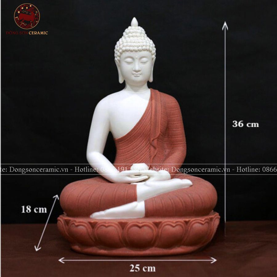 Tượng Thích Ca Mâu Ni ngồi tĩnh tâm bằng sứ nâu đỏ ngồi hoa sen cao 36cm - 40cm