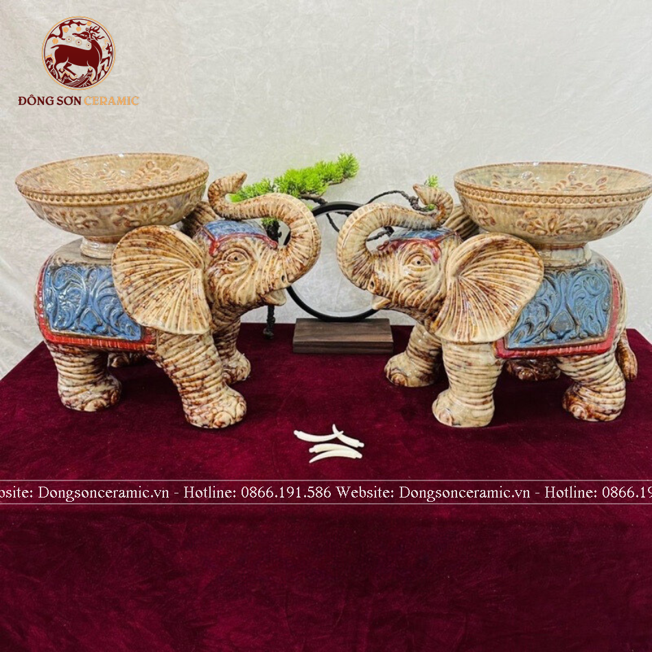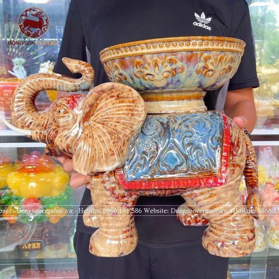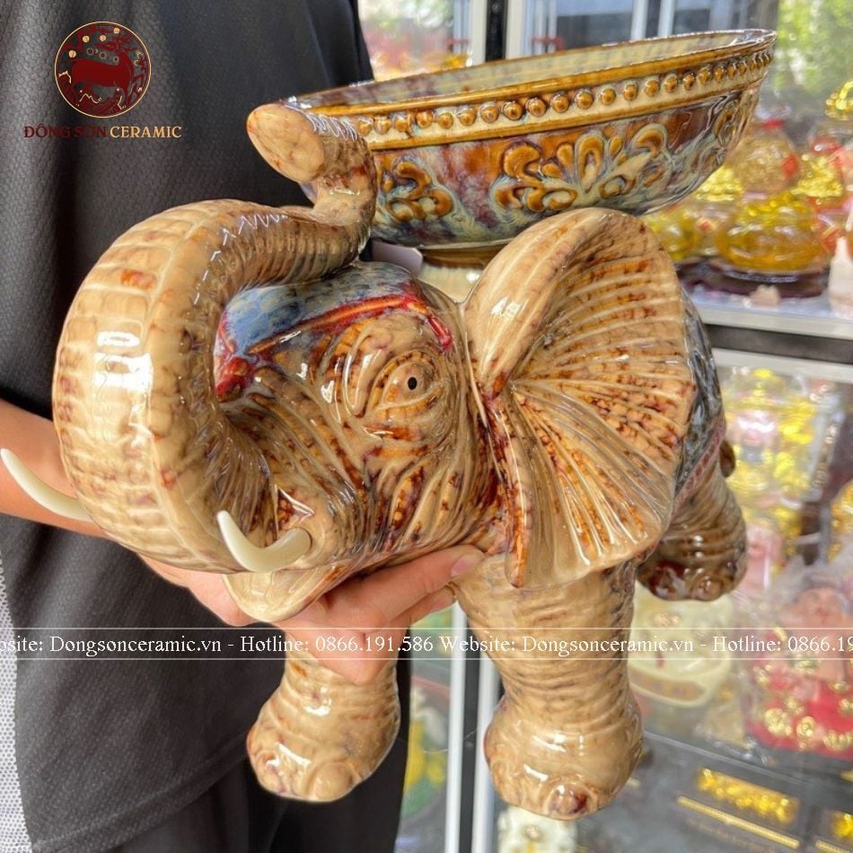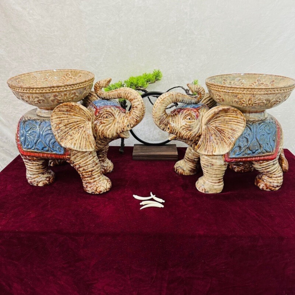 Tượng voi gốm sứ dâng quả cao 37cm